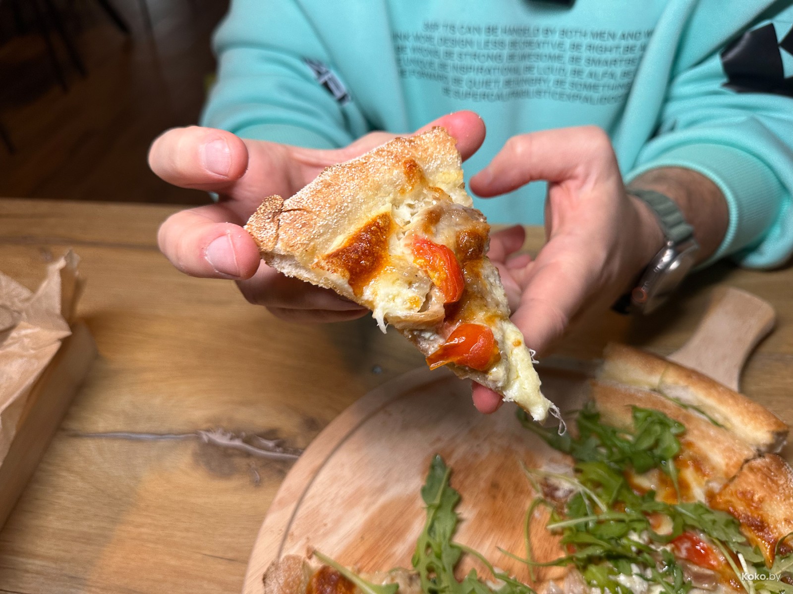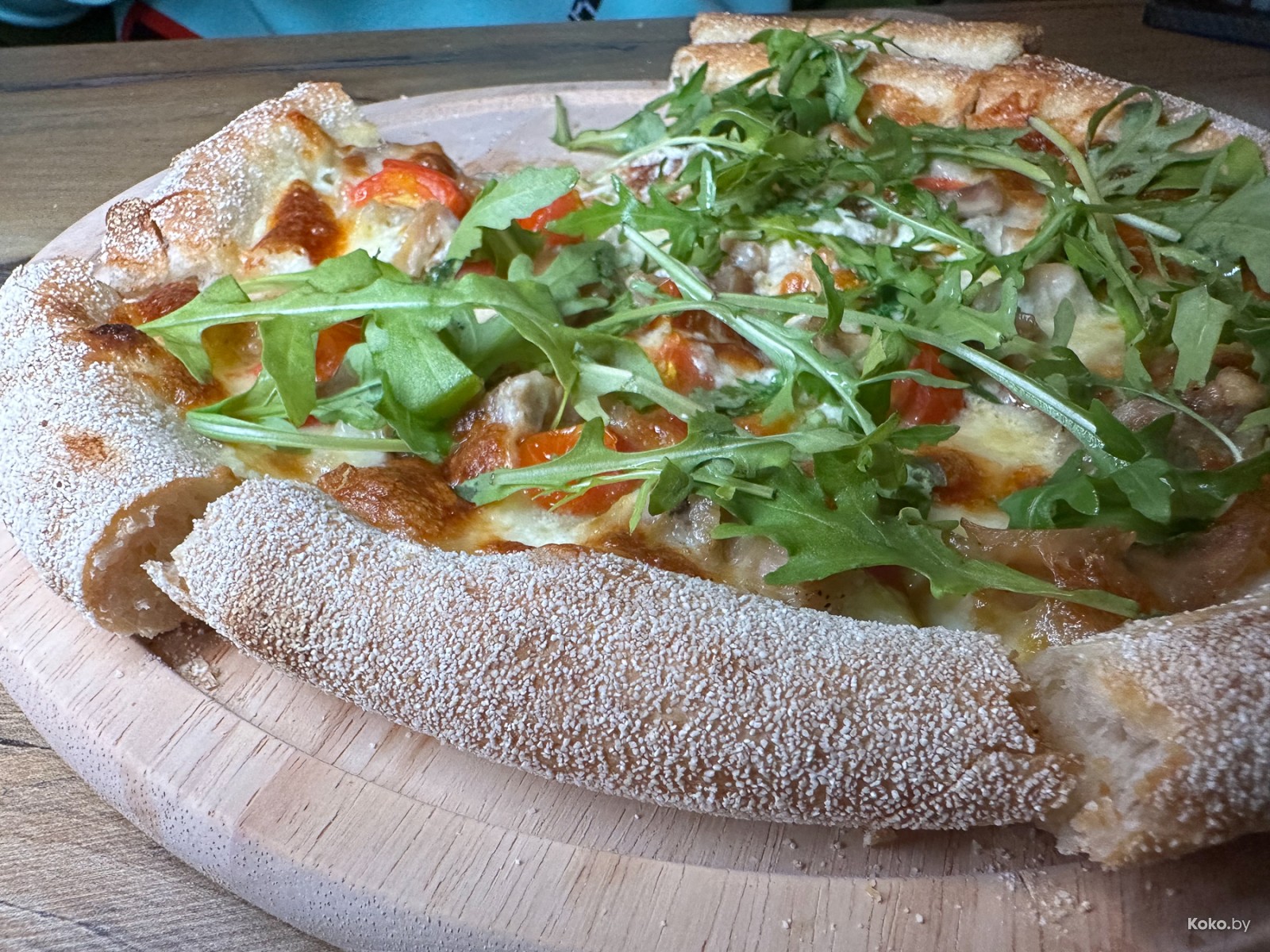По ощущениям что-то между кукурузными бортами «Доминос» и начинкой любимой пиццы в «Ланголо». Тесто тонкое, хорошо стоит, сыр тянется, сочная начинка и никакого майонеза. Вкуснотье!