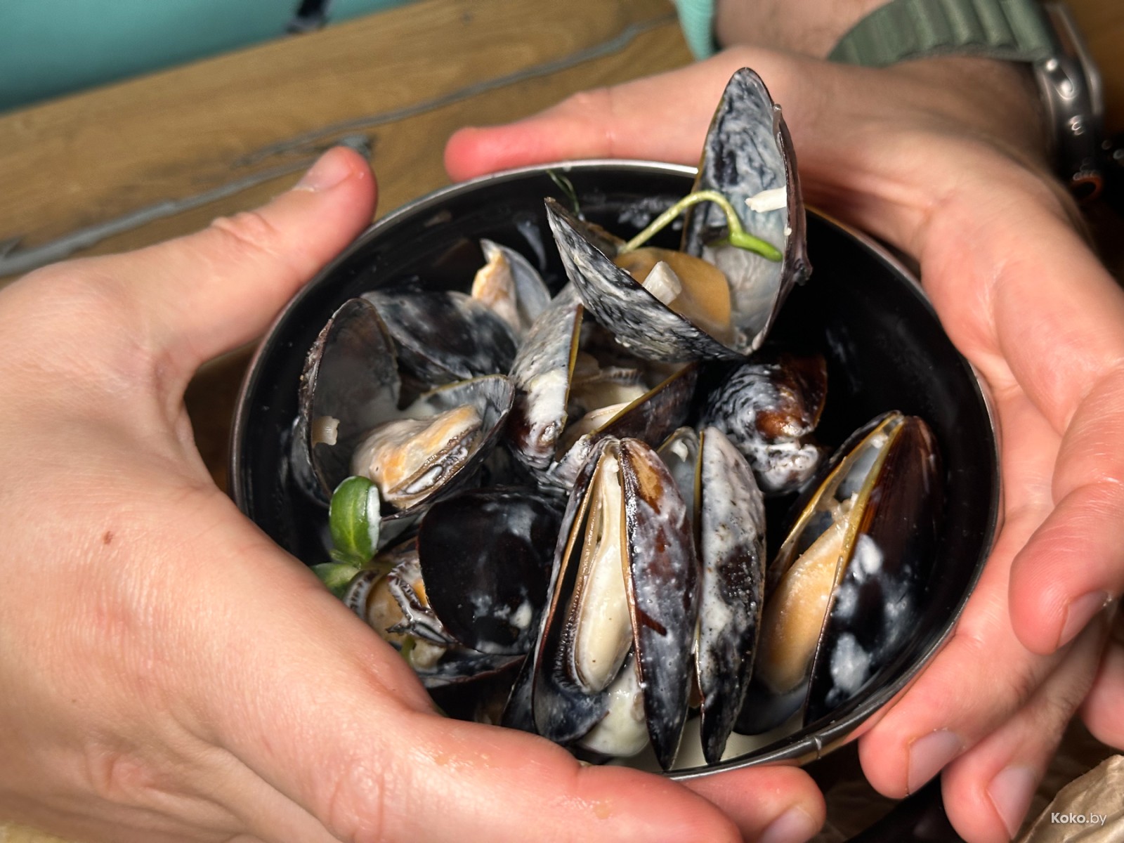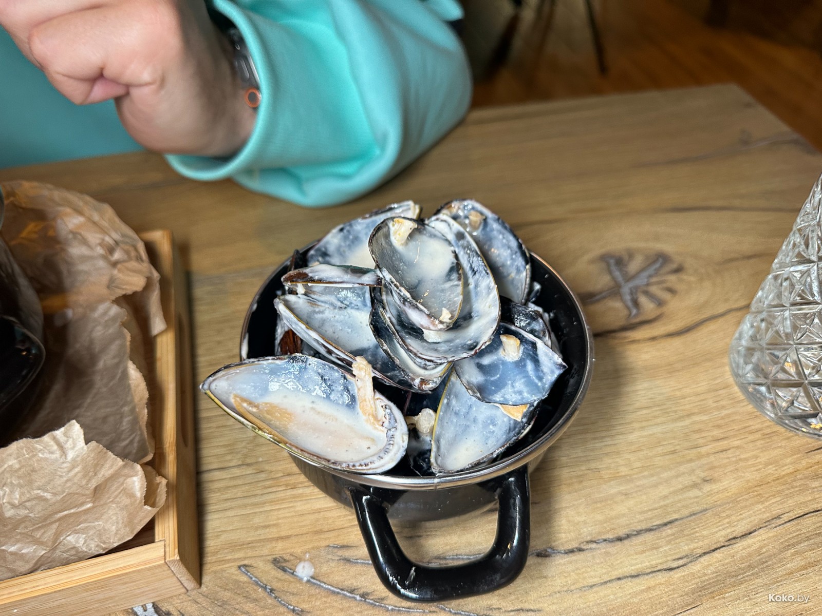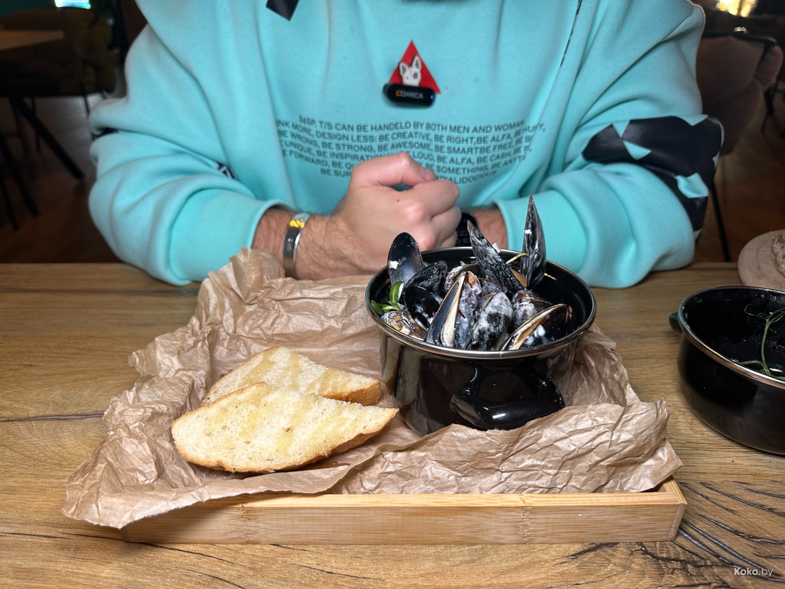 5. Наконец-то кастрюля! В меню нет выхода блюд, и теперь мне стало понятно, почему именно кастрюлька мидий в сырном соусе стоит 13р.