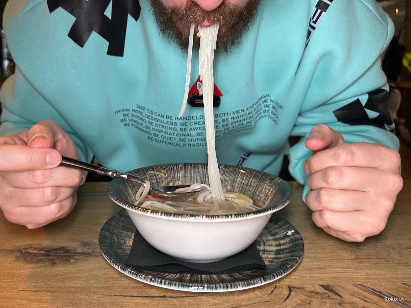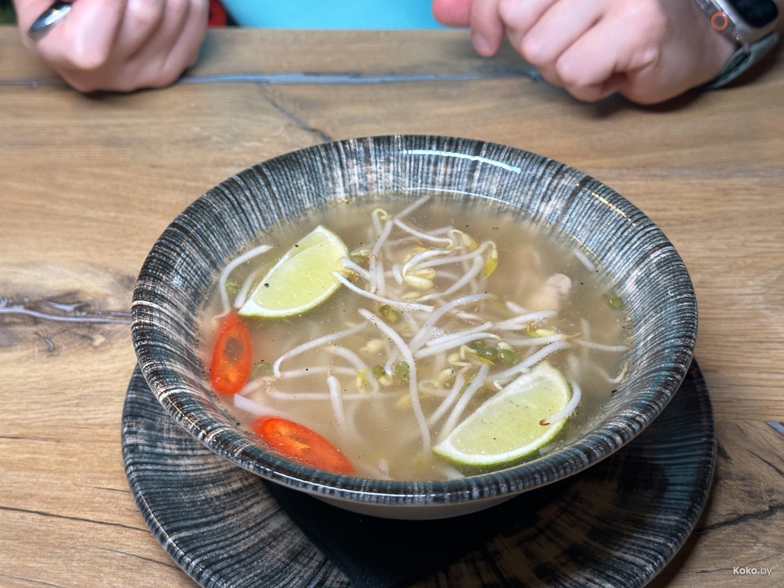 3. Снова не мидии, да что ж ты будешь делать! Тарелка сомнительного во всём куриного бульона по-азиатски с лапшой, лаймом, и попробуй вылови в нём курицу. Невкусно, но по цене чашки капучино.
