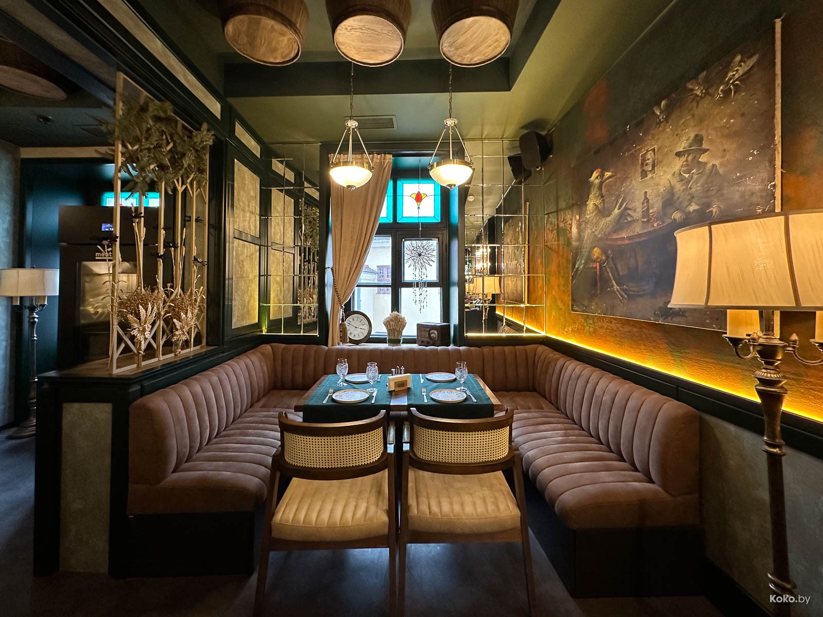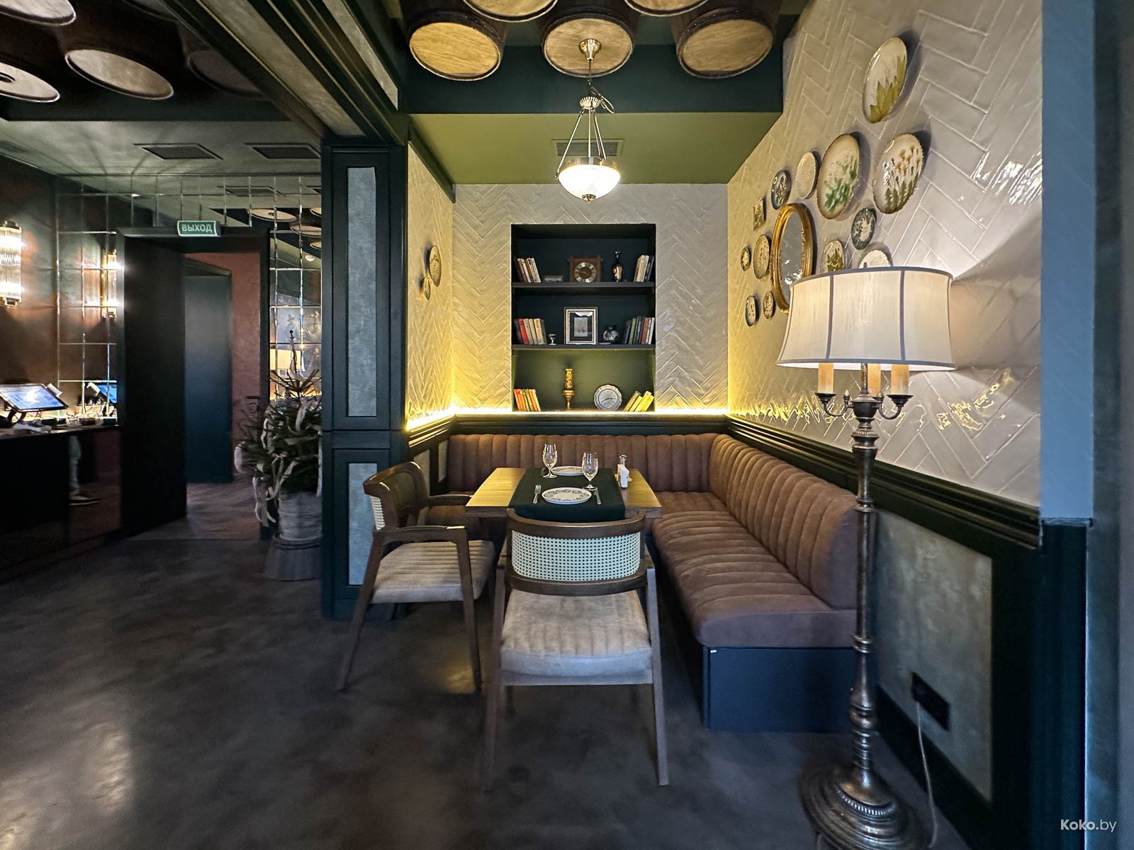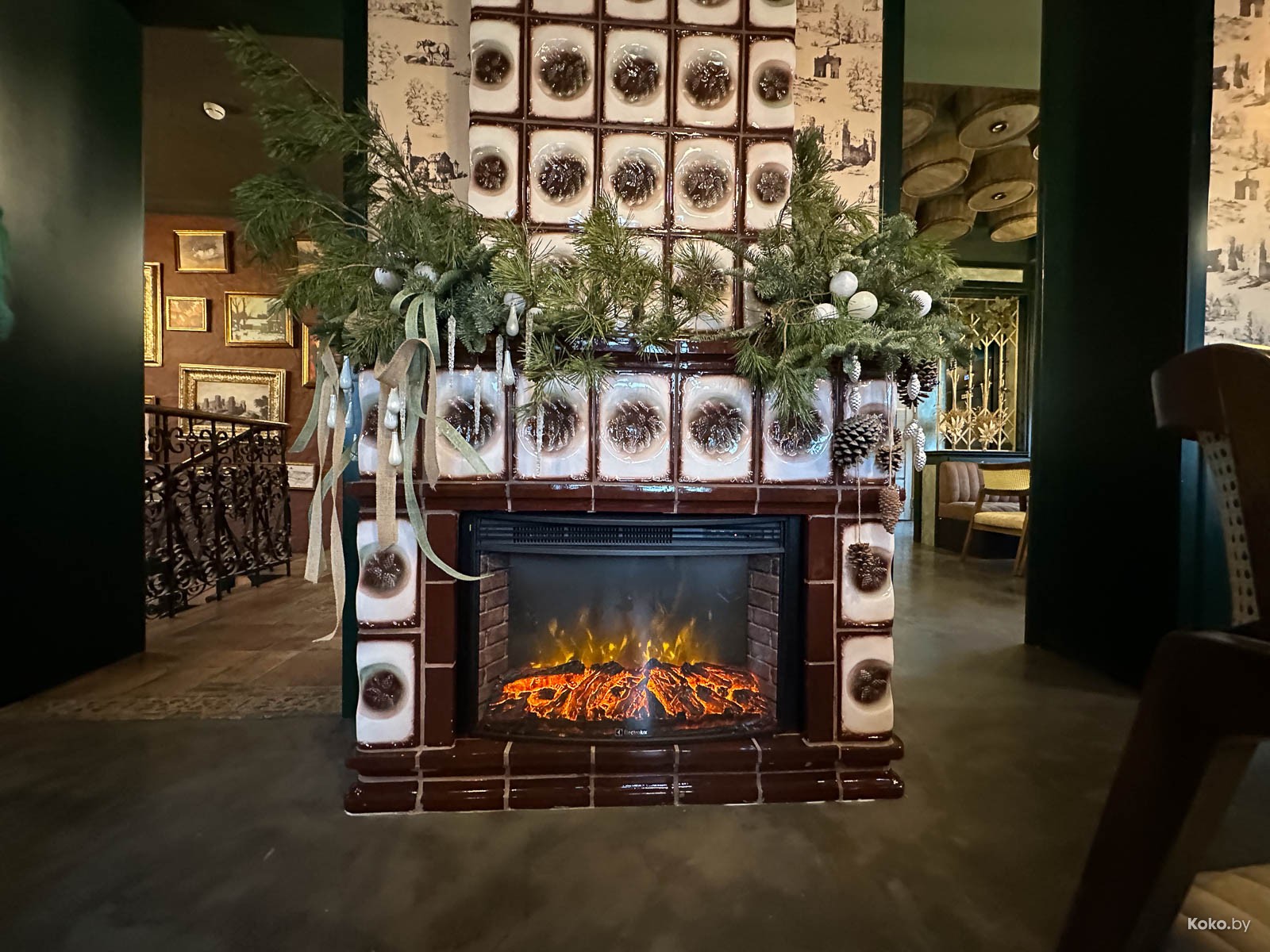Имеем много залов без дверей, шляхецкий вип-стол в келье, отдельный бар и ещё два зала на втором этаже, в одном из которых ручной камин, который не обидит. Получилось самобытно, уютно, как-то по-домашнему спокойно. НО! Нужно больше элементов белорусского декора.