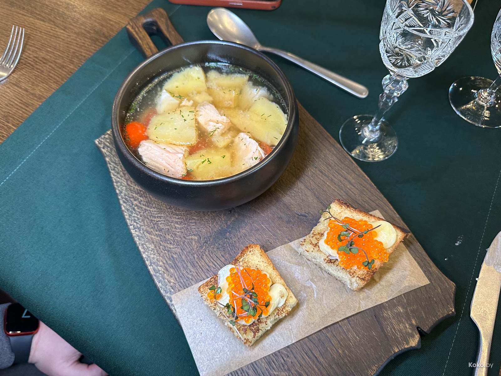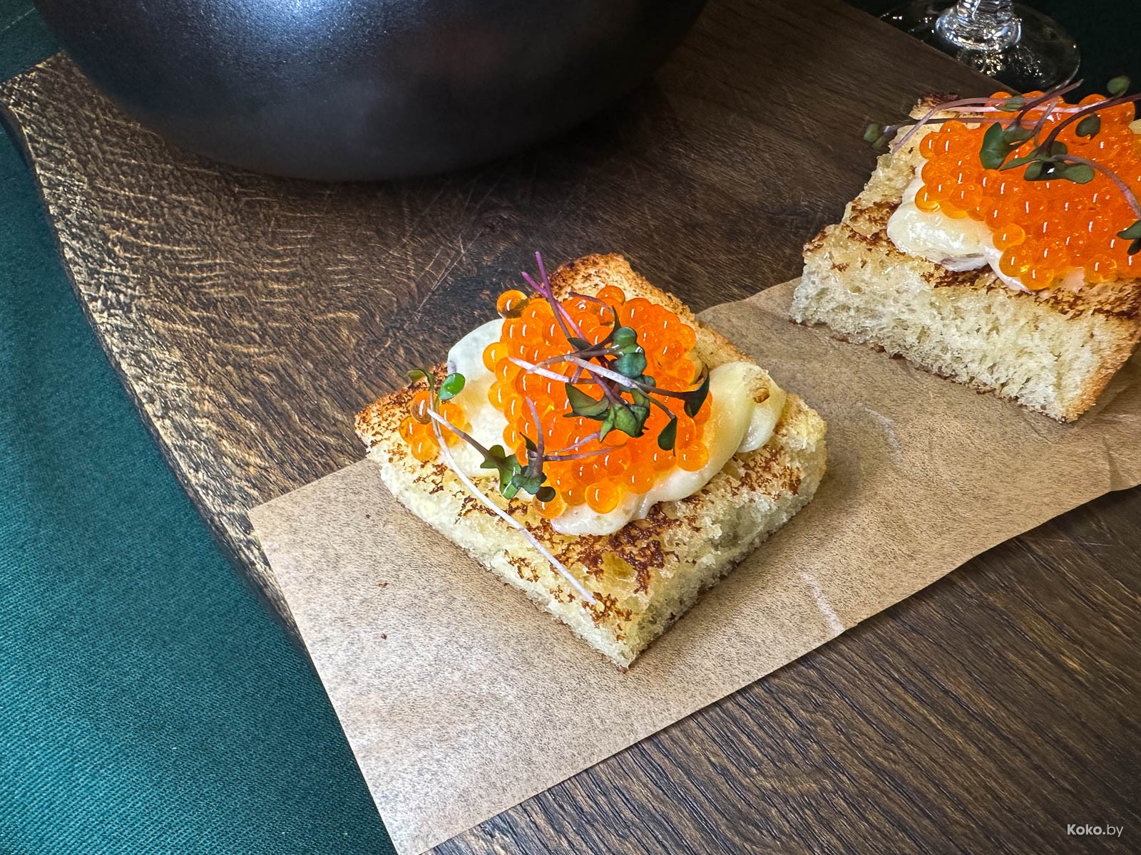 3. Уха из трёх видов рыб за 20р, в которой плавают копчёная осетрина, витебская форель и браславский окунь. На гарнир рюмка и бутеры с красной икрой рандомной рыбы. Рыбу выловили не зря, огненно!
