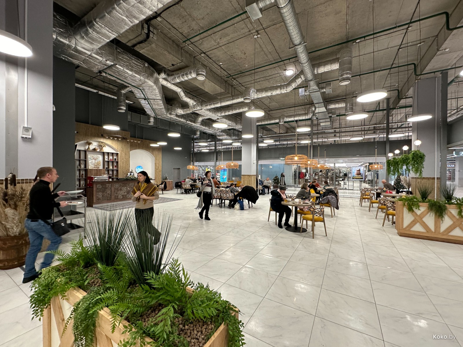 Про ассортимент первого торгового центра только с белорусскими брендами почитаете опосля. А сейчас я проведу вас через долину цiкавых хот-догов, драников, пончиков и НЛО-бургеров в поисках годной еды и вкусного кофе. Если не брать с витрин сыры, колбасы, куриные жопки и пироги в «Гранд Каравае», еда в «Першым гандлёвым доме» обитает строго на втором этаже, где фудкорт, и на цокольном в что-то типа модного «Лидо» под вывеской «Пан жыта».