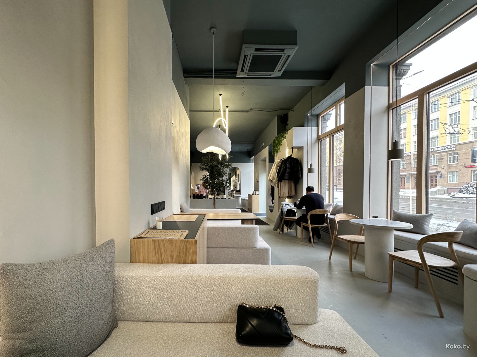 Через дорогу от «БГТУ», там же рядом завелась французская пышечная «Бенье». Короче, это повседневное уютное кафе с мягкими диванами, большими окнами, годным кофе и вешалкой для одежды под потолком.