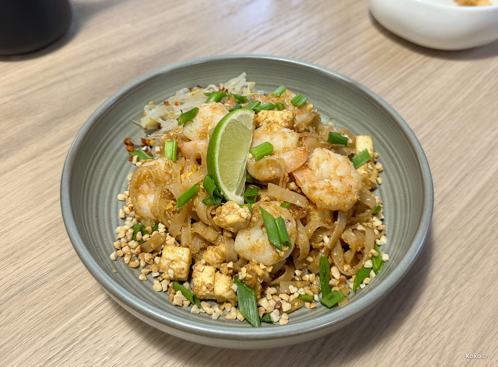 Во второй день чудесно попал на скидку в 50%: суп Том Кха с курицей и рисом, шампиньоновый крем-суп с сухариками, лапша Пад Тай с креветками, карри с курицей, вода, лимон, капуч - за всё 39,28р.