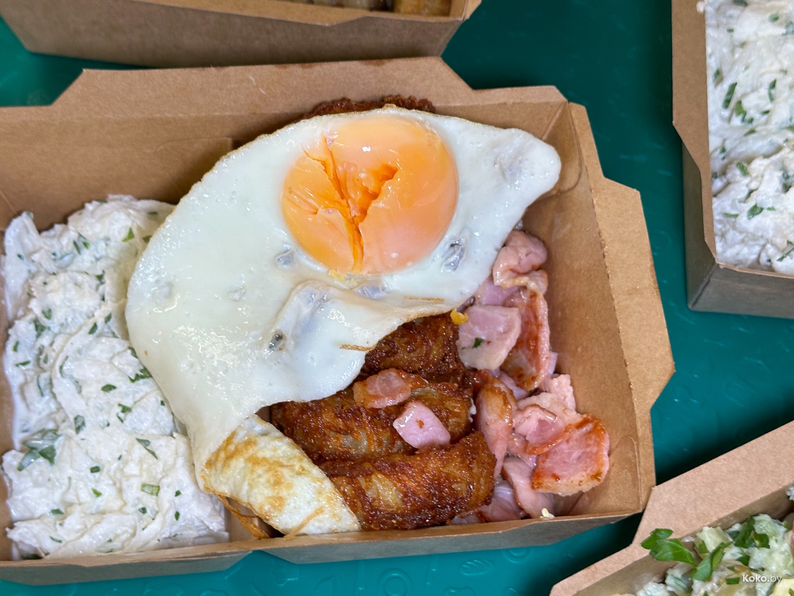1. За 7,90р три драника с элементами бекона под глазуньей плюс салат на выбор. ЗБС комбо за эти деньги. Вкуснейшие драники на крупную тёрку, масло почти не течёт, хрустящие снаружи и мягкие внутри. Бекон важно жарить до состояния чипсов, а глазунью - нет. Годно.