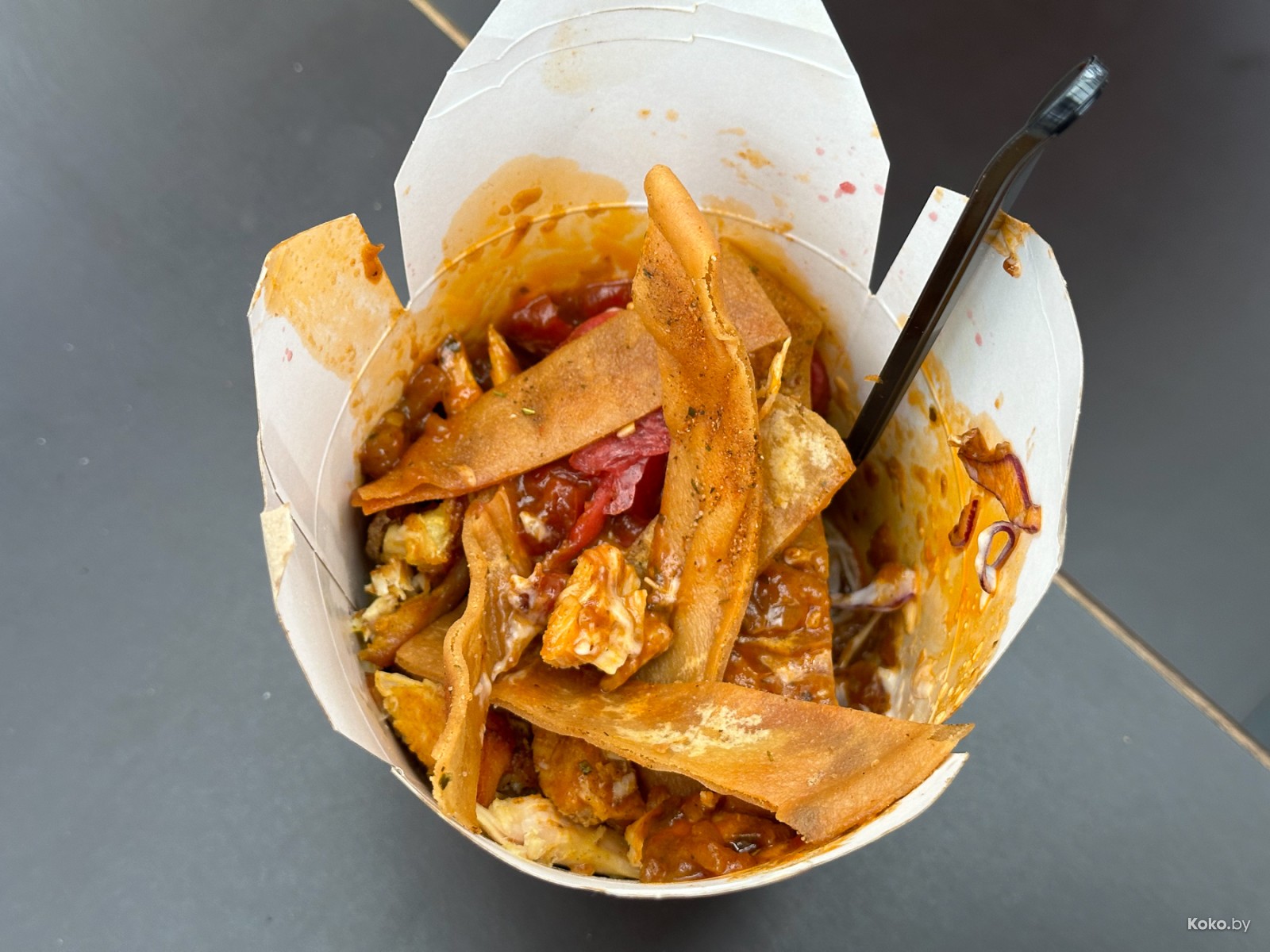 2. Как шаурма, только в коробке за 11,90р с промасленными пшеничными чипсами. Сочнейшее куриное филе с жареной картошкой, малиновым луком под соусами, хз, что они добавляют, но остановиться невозможно.