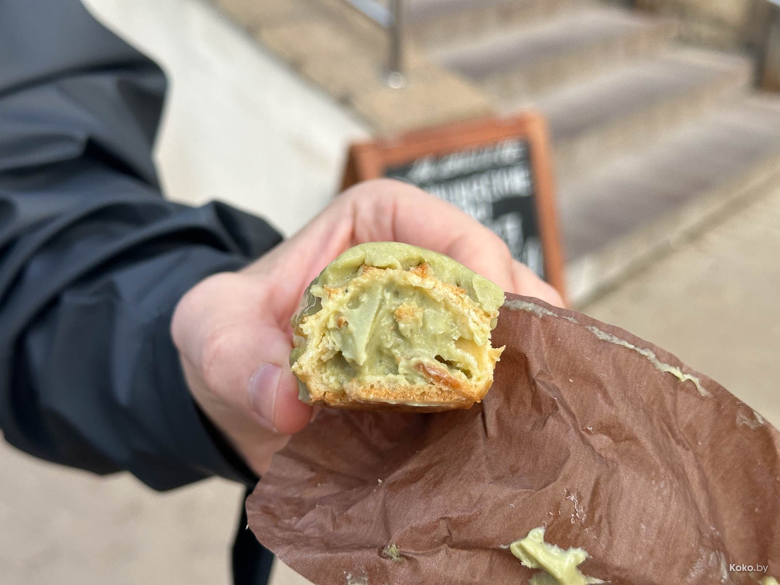 А ещё там рядом открылась французская пекарня сети «Ля Багет». Внутри вроде как уютно, шикарный фисташковый эклер за 9,20р, есть завтраки, а ещё местные жалуются, что никогда нет свежего хлеба.