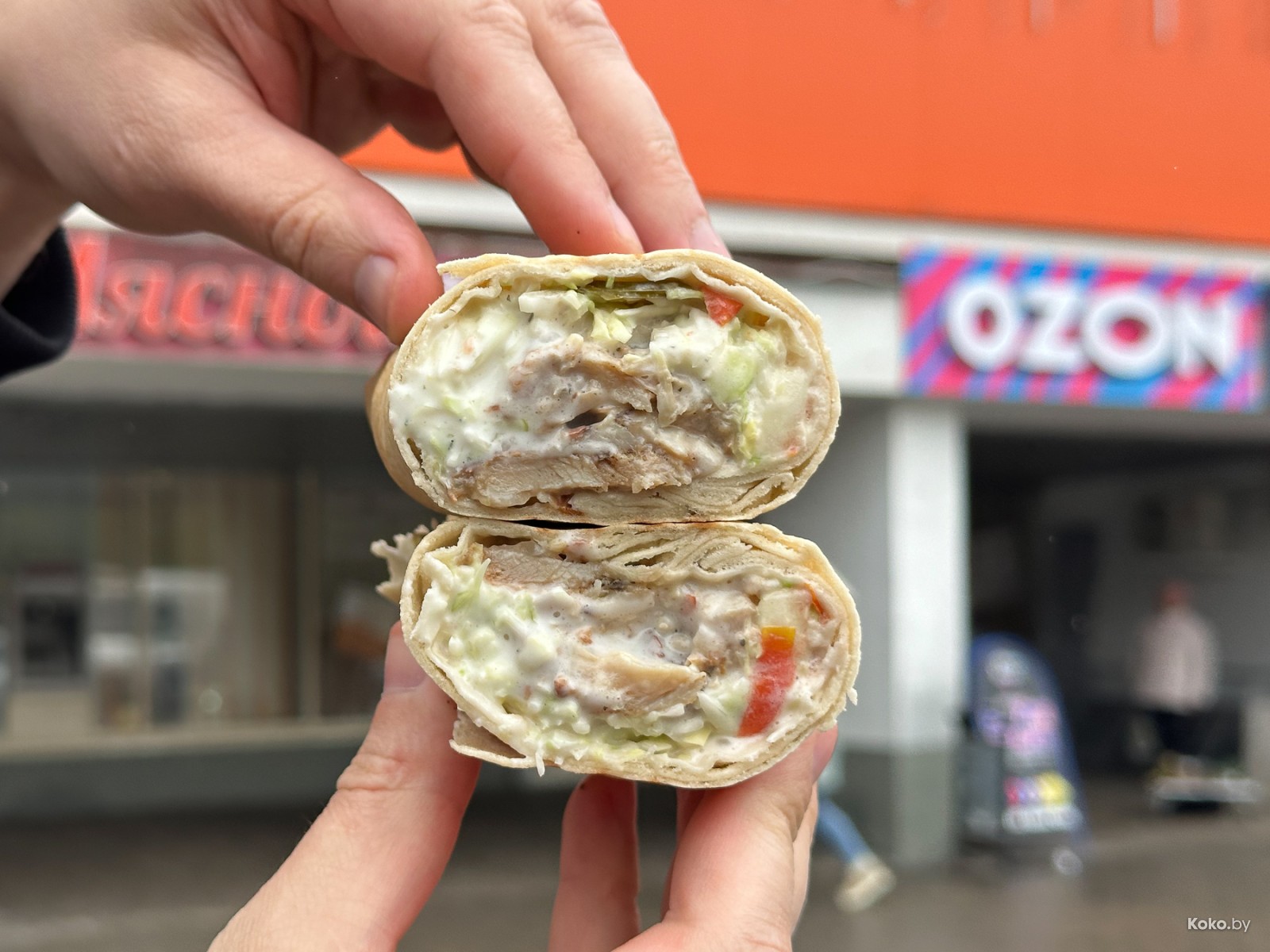 Нет покоя заворачивателям куриного мяса с капустой в лаваши. Каждый день где-то открывается ещё одна точка с шаурмой, и так же безызвестно уходит с табличкой «Аренда». Из всяких разных новых безобразных я выбрал тех, кого вы чаще всего просили затестить. На первое сегодня у нас новое кафе «Жанчик» - ждёт нежданчик на Нёманской, 45. И на второе уже сеть какой-то «Мистер Пабло» чуть дальше на улице Одинцова, 20. В кулачке на всё про всё зажал 15р.