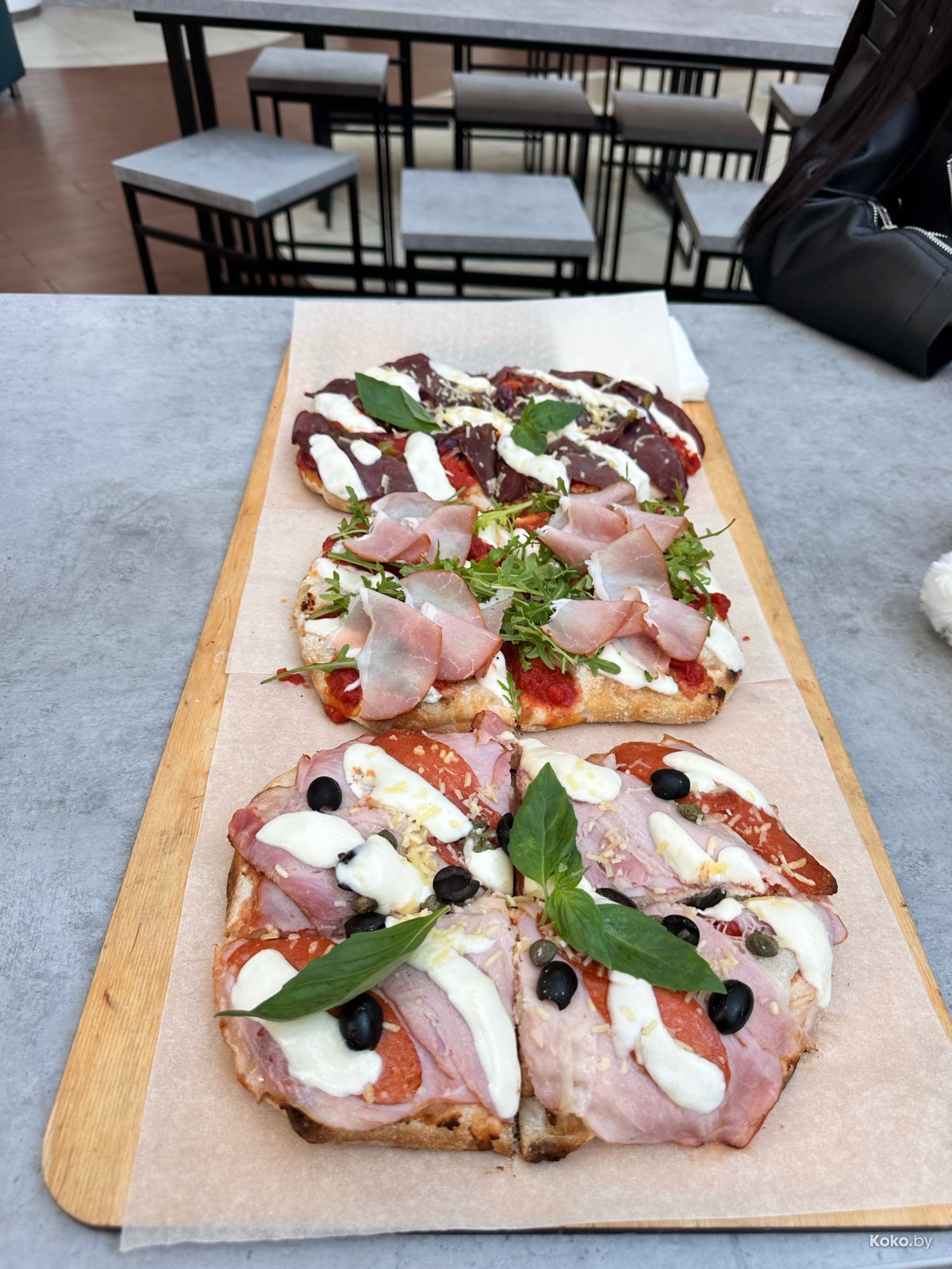 Нифига не новая история, которую по непонятно какой причине объехали по обочине. Находится белорусская «Римская пицца» на фудкорте «Арена Сити» до «Сметанки». Когда увидел цены, вспомнил, почему закозлился обзор писать, показалось, что какой-то лютейший конь на тесто с колбасой для фудкорта. Римская пицца - это когда тесто с хрустящей корочкой и пышной, кружевной текстурой. Как правильный багет, только прямоугольная и плоская основа.