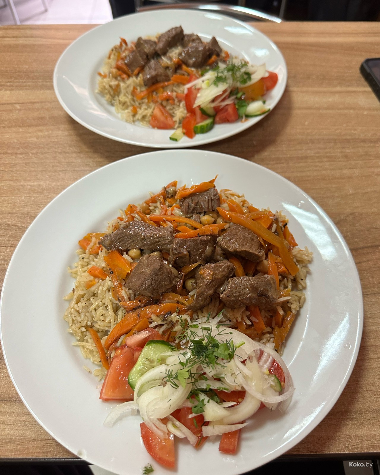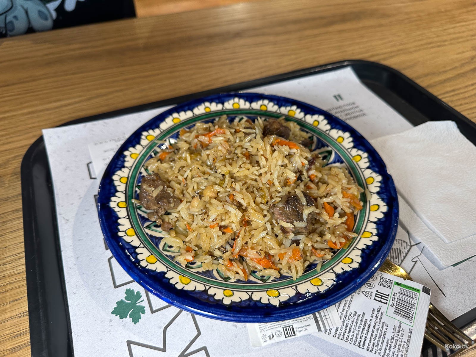 Триста граммов плова с барашком на 2 рубля 10 копеек дешевле блина. Пара кусочков растушенного мяса, остальное - пряный рис в морковке с нутом. За такое бабло должно быть больше хотя бы риса. Вкусно.