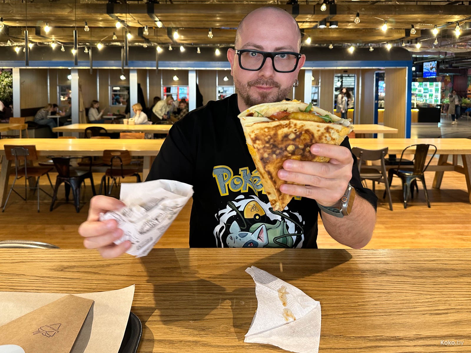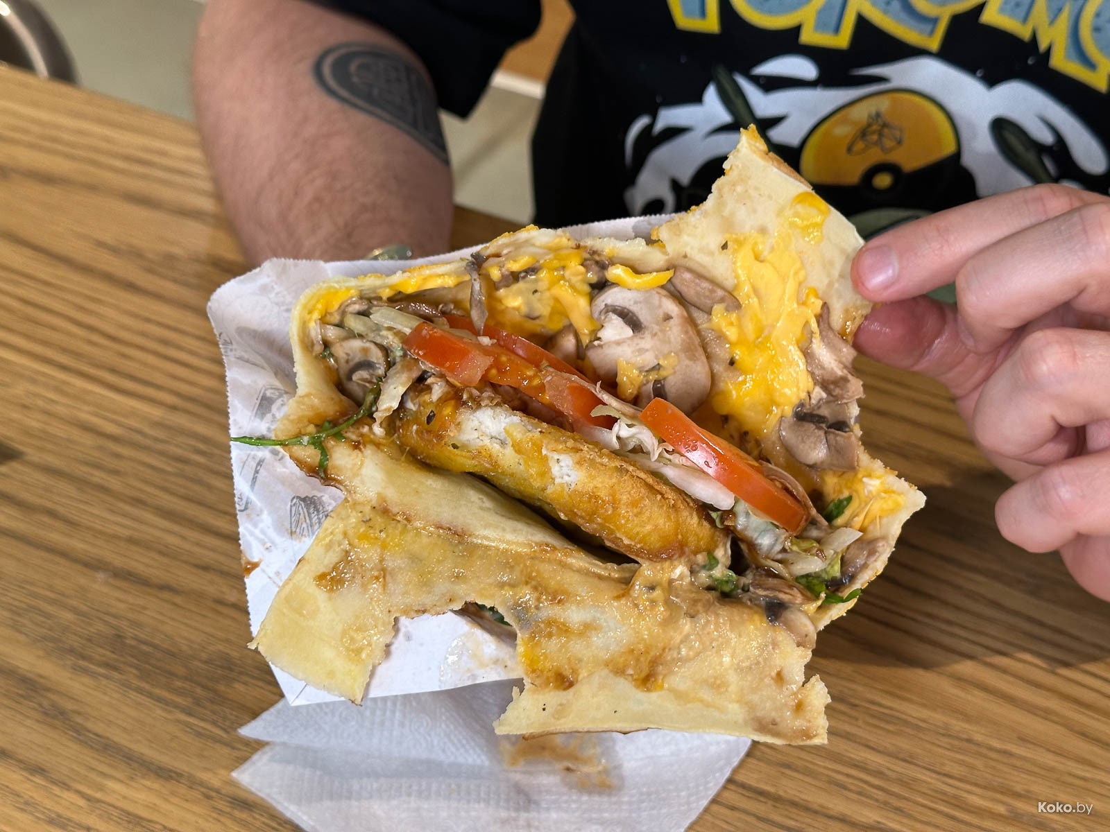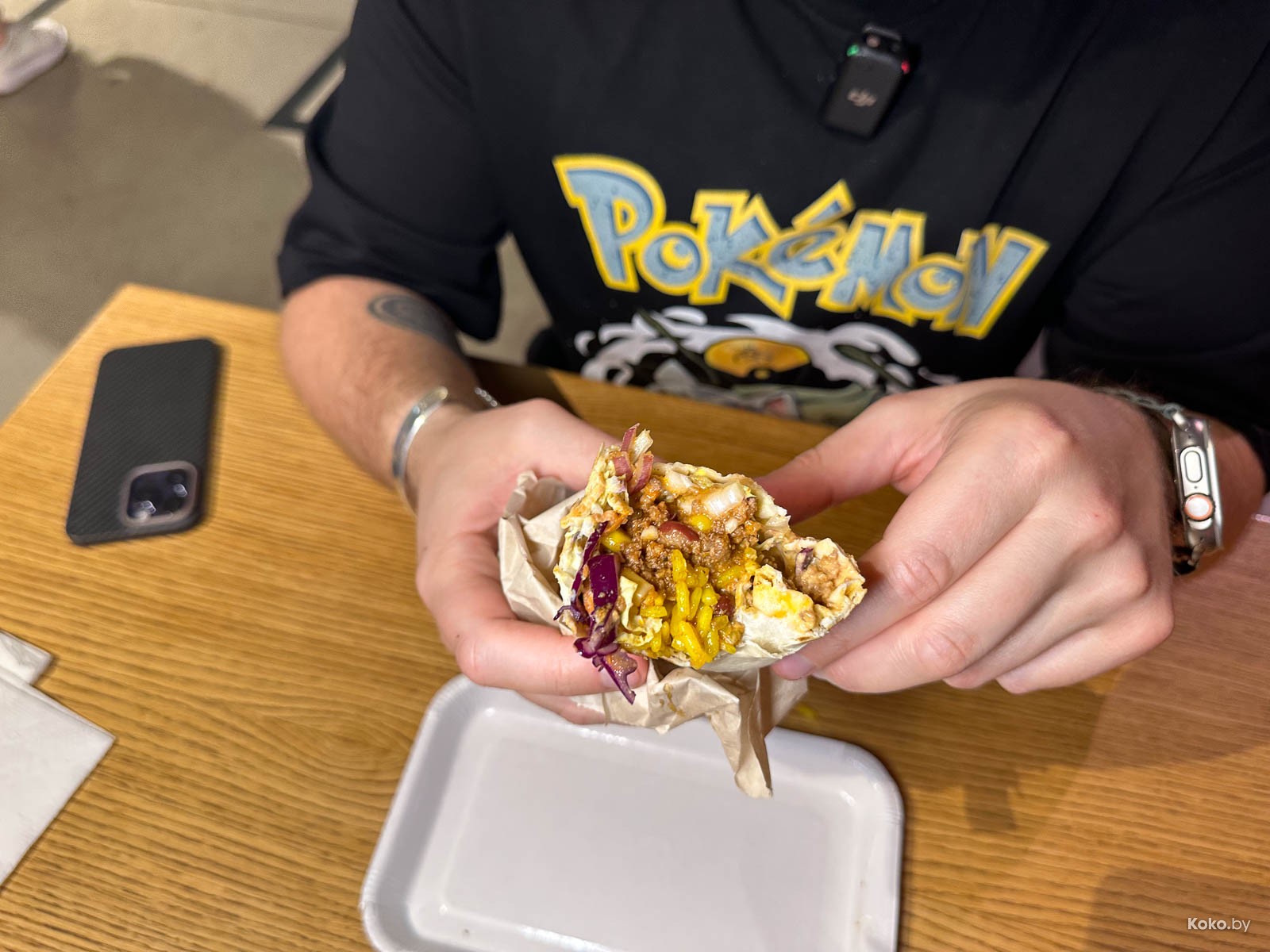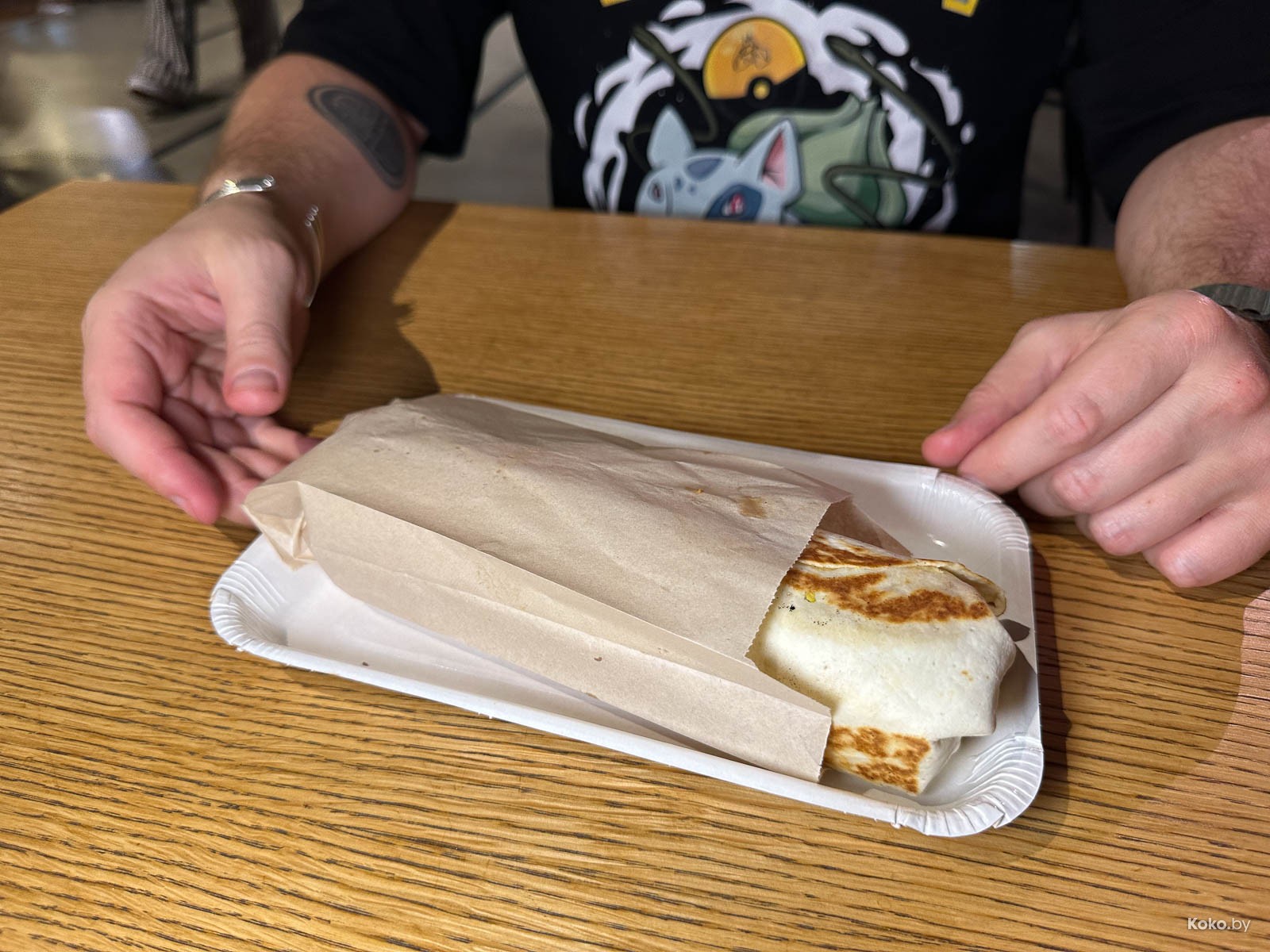 Толстый размер, много фарша, сочнейшая начинка с капустой и красным луком профессионально скручена в пшеничную тортилью после гриля. Крепкие 8 кокобаев, ел и плакал от счастья. Вива Мексика!