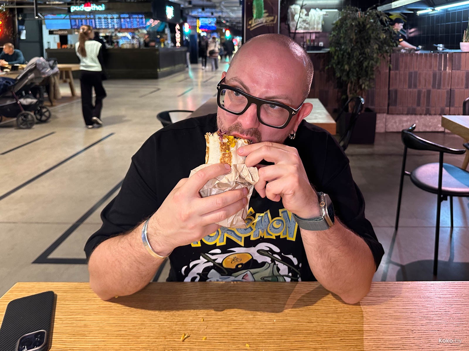 Что затестить вкусного на «Конкорсе», когда всё надоело: царь-блин в конверте, буррито, шашлык и фляки с колбасками