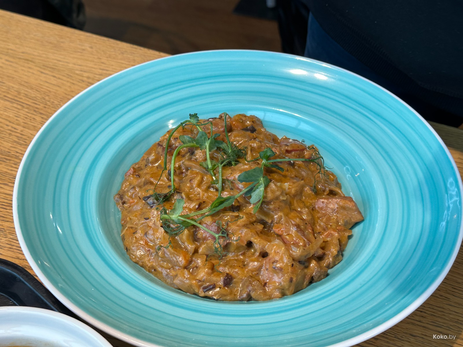Жареные пельмени без эмоций, биотопливо. Журек на приятной закваске, честная порция - годно. Тушёный бигос все есть отказались, ткнул разок вилкой, тушёная капуста, как в садике, только с мясом.