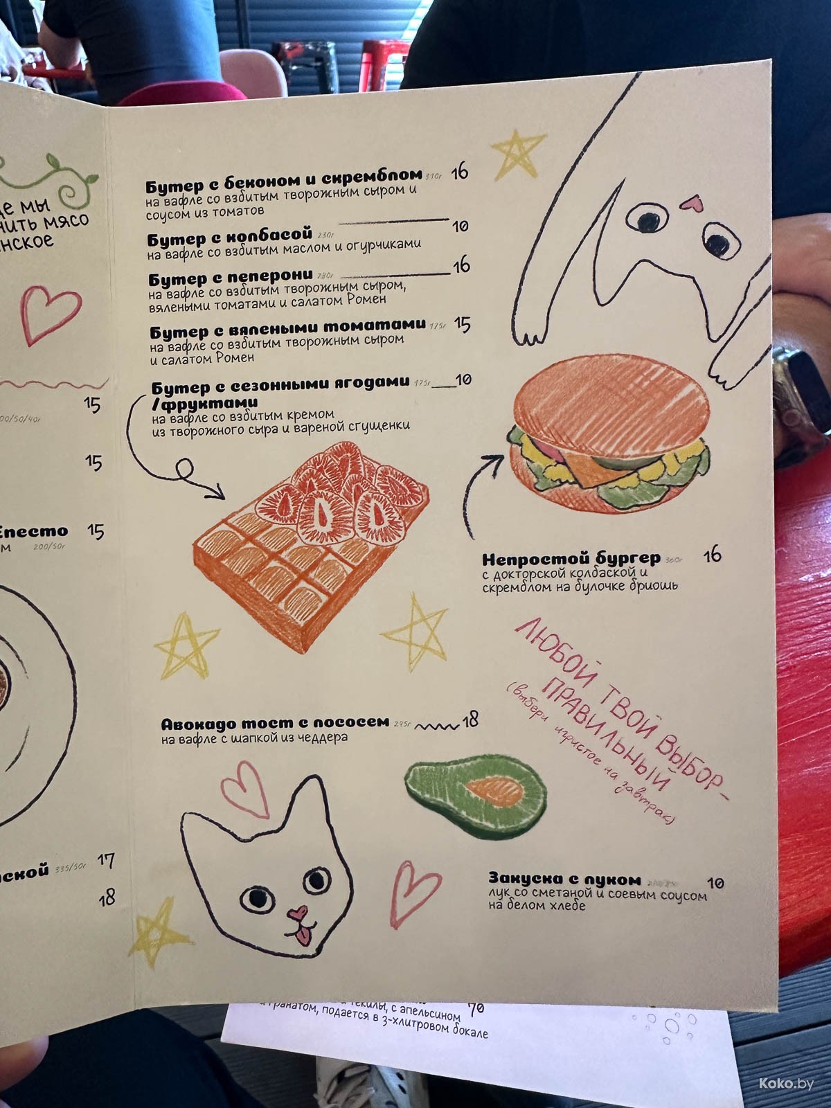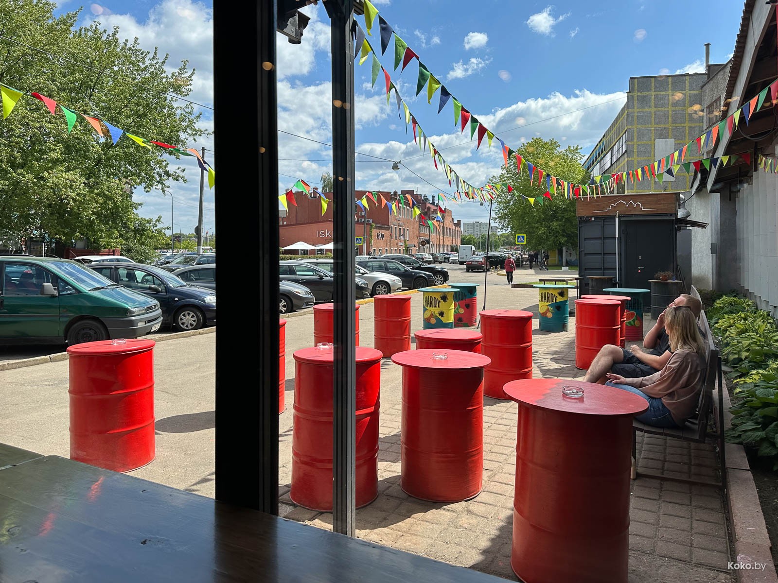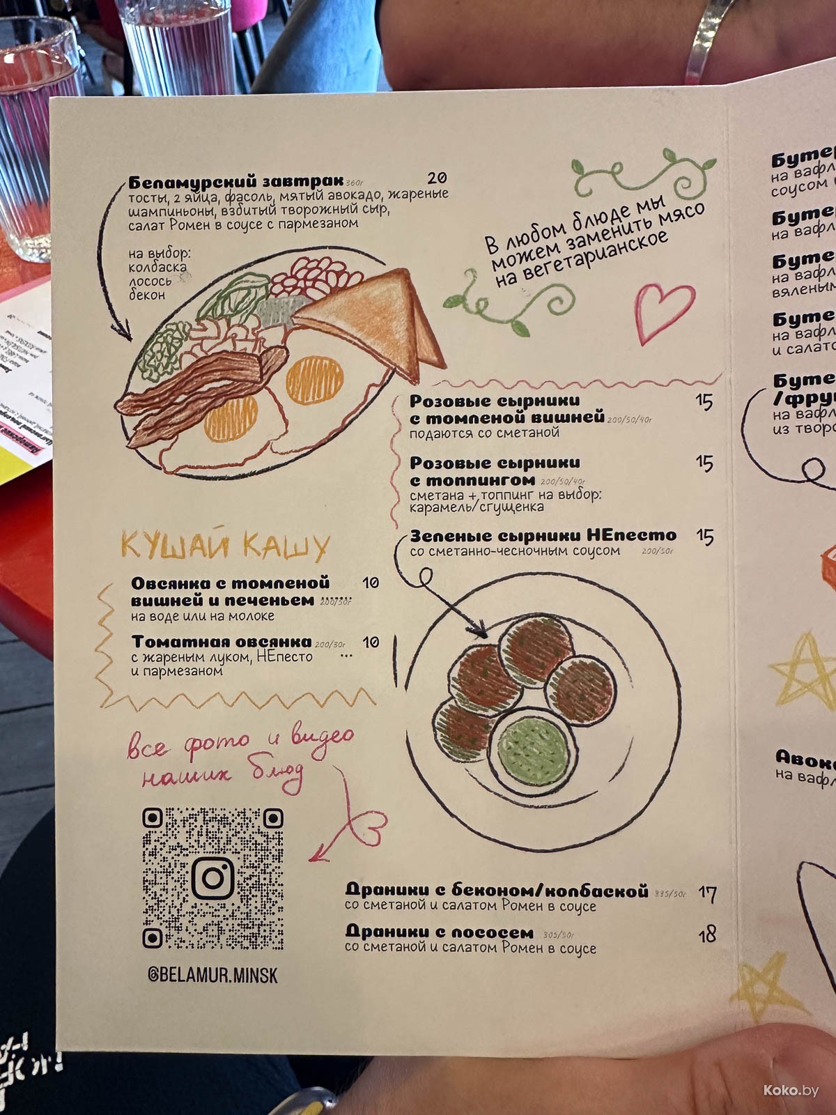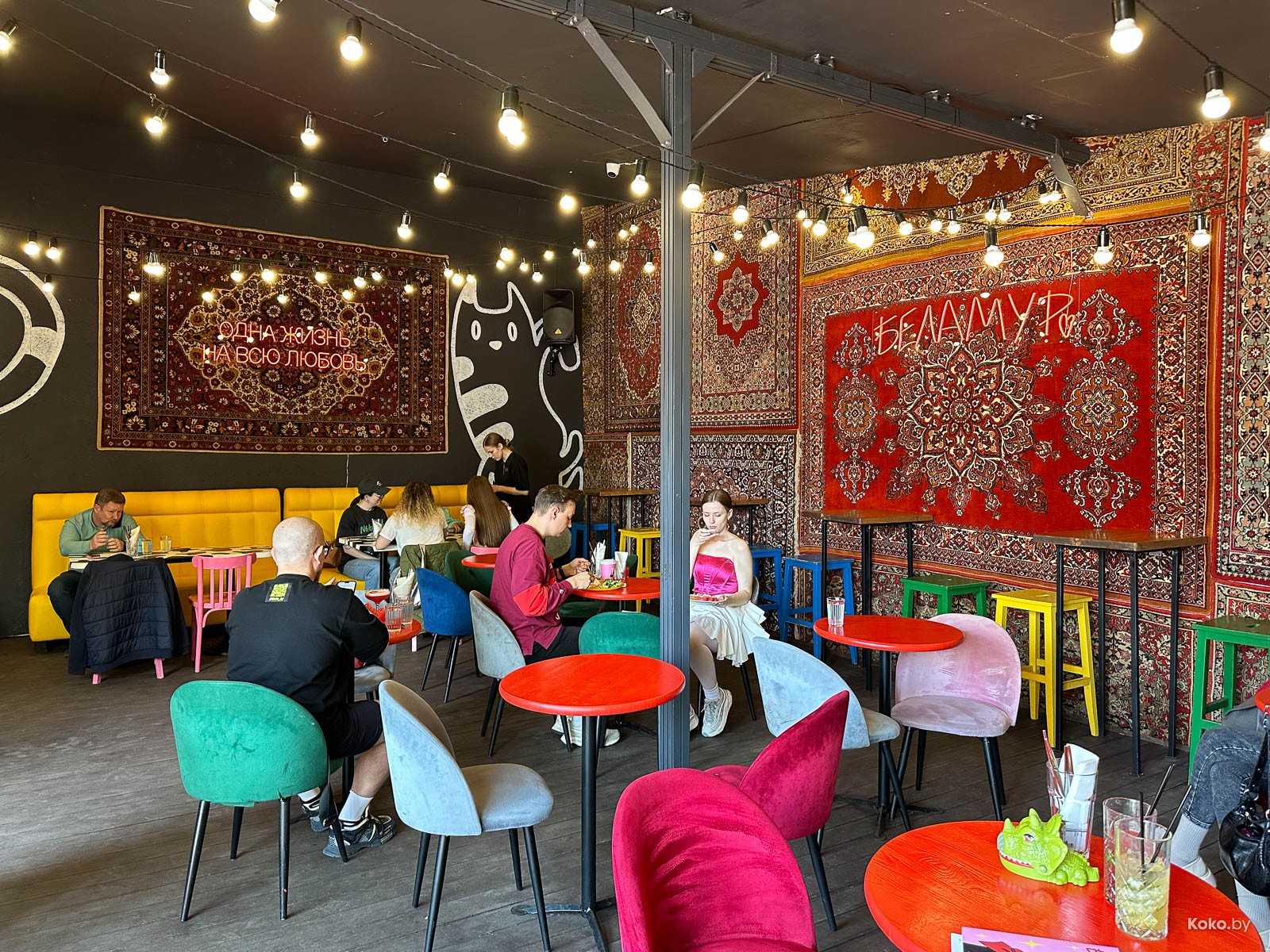 Отдаю должное, название скреативили збсное, полностью передаёт суть нового кафе-бара. Октябрьский «Беламур» (звучит, как порода котика) - этакая лавстори с ремонтом старого бара на скорую руку, но при этом всё как-то так мило, по-домашнему комфортно. Говоря простым языком про еду: всё, что сам утром готовишь дома, продают в стенах закрытой террасы с внутри утеплёнными коврами стенами. Бабушка бы аплодировала стоя, пока не увидела цены на драники.