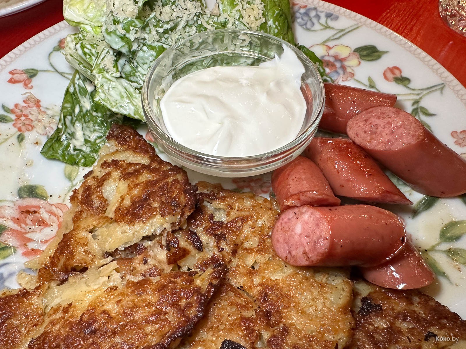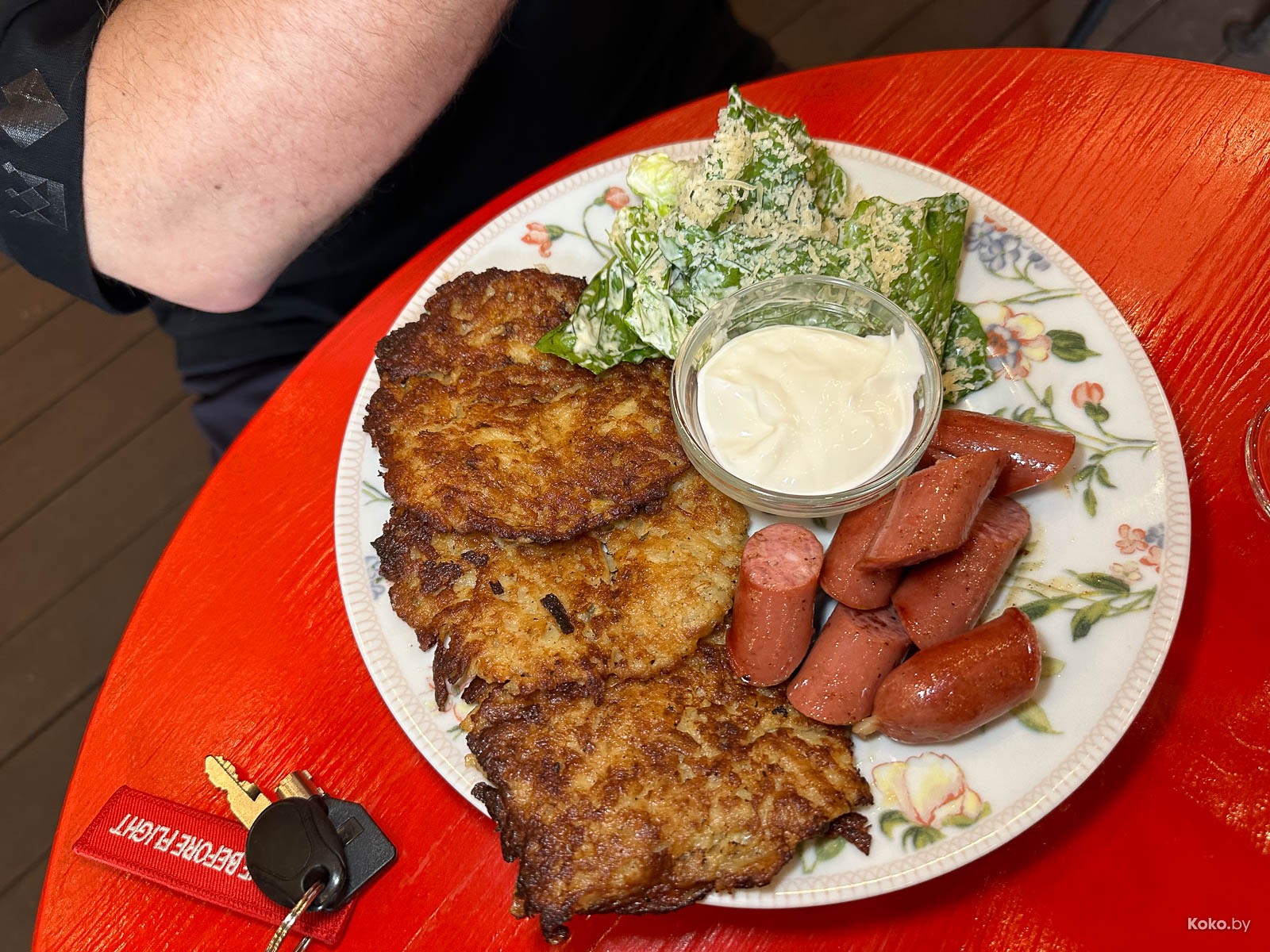 Хрустящие драники на отлично, тоже так дома золотистыми делаю. Жирная колбаска - это в солянку, за немалые для картошки 17р могли быть две куриные с вялеными томатами от «Галереи Вкуса». Спорно.