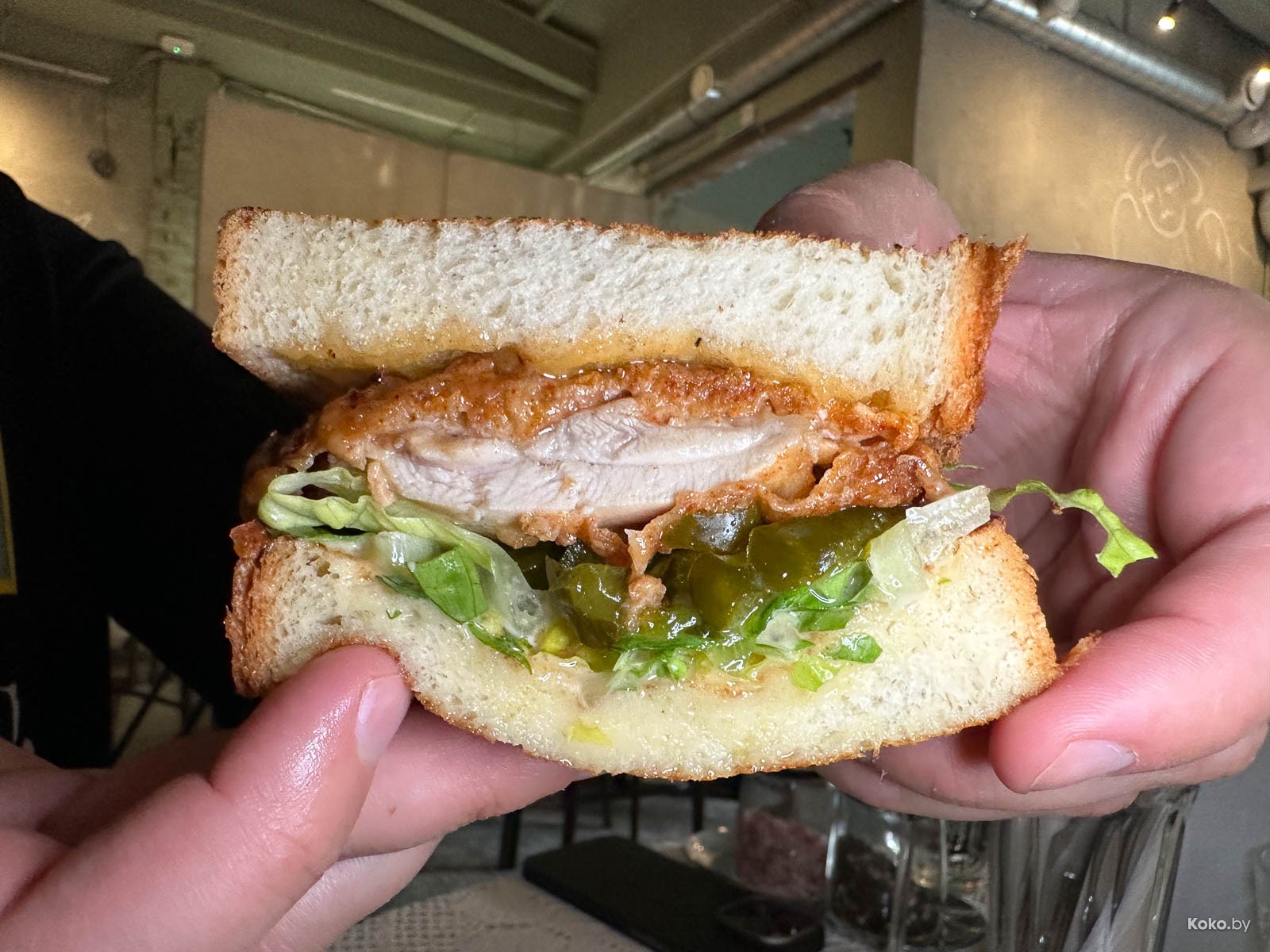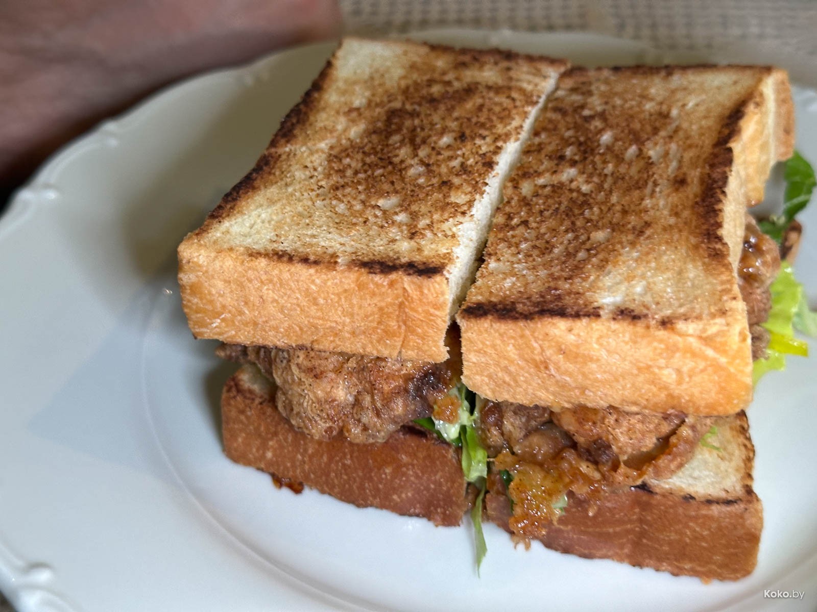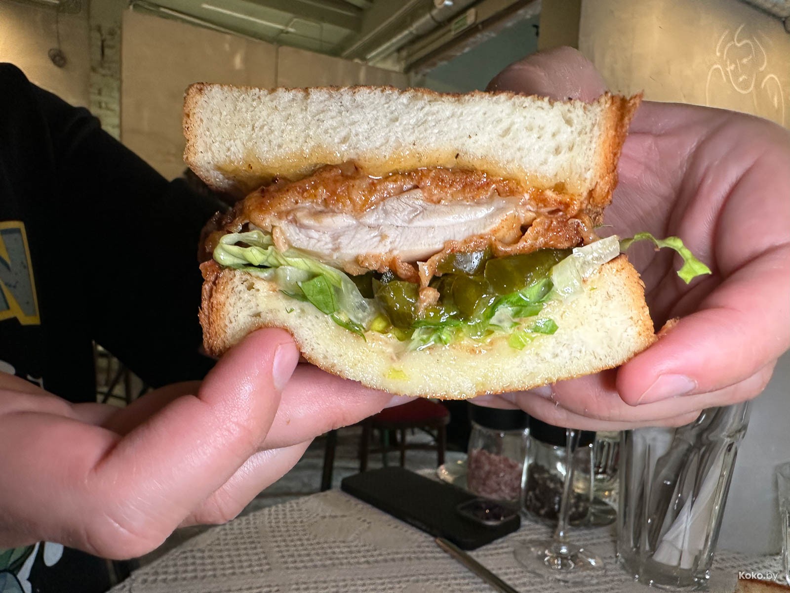 3. На вид, как школьная ссобойка, но нет. Закрытый тост собрали из того, что дают на завтрак, плюс липкий соус и пикули. Лучшее вложение 18р.