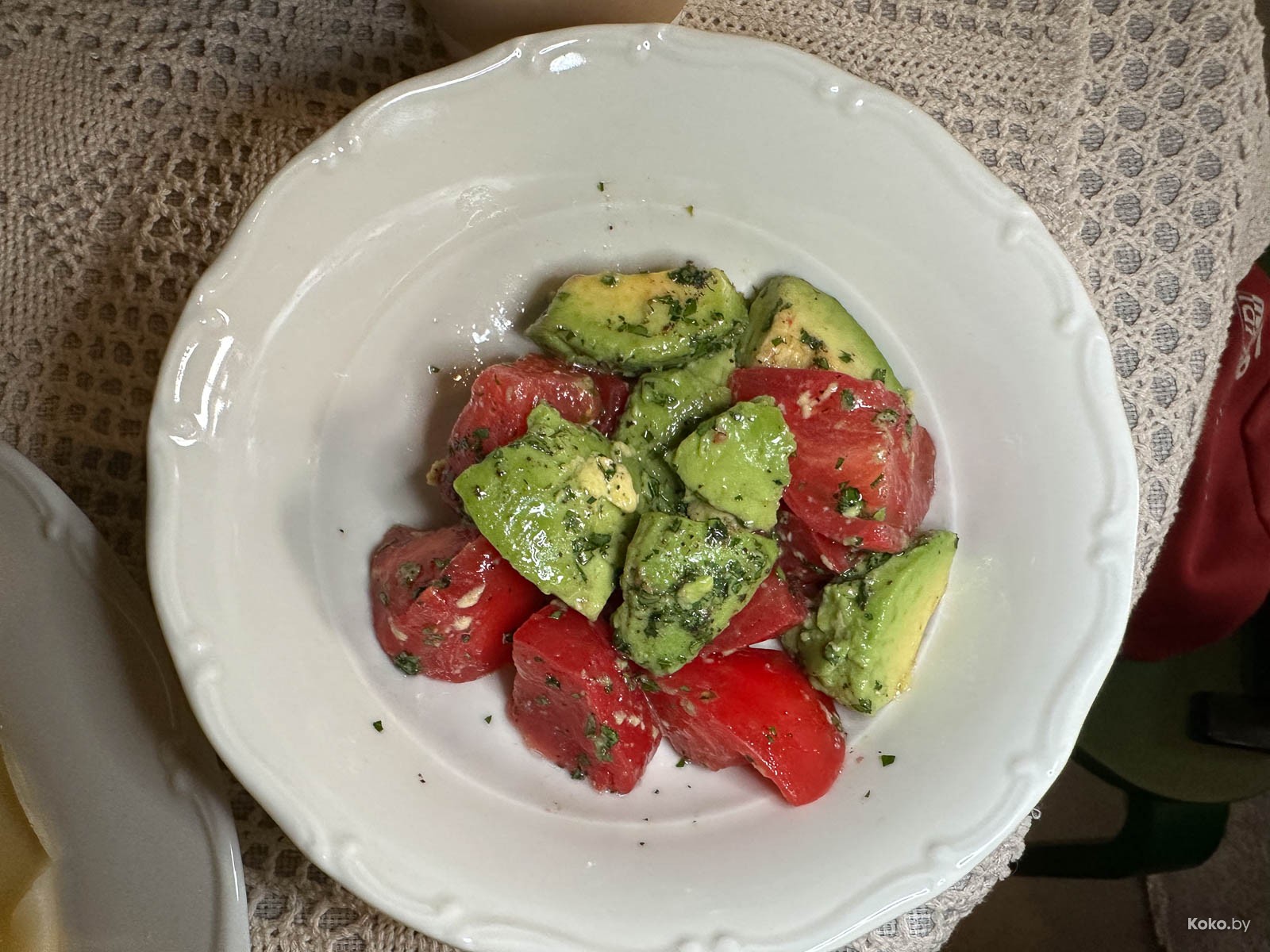 По качественно сладким помидорам с мягким авокадо в салате можно сразу сказать, что готовят не на забитом. Дьявол в мелочах блюд.