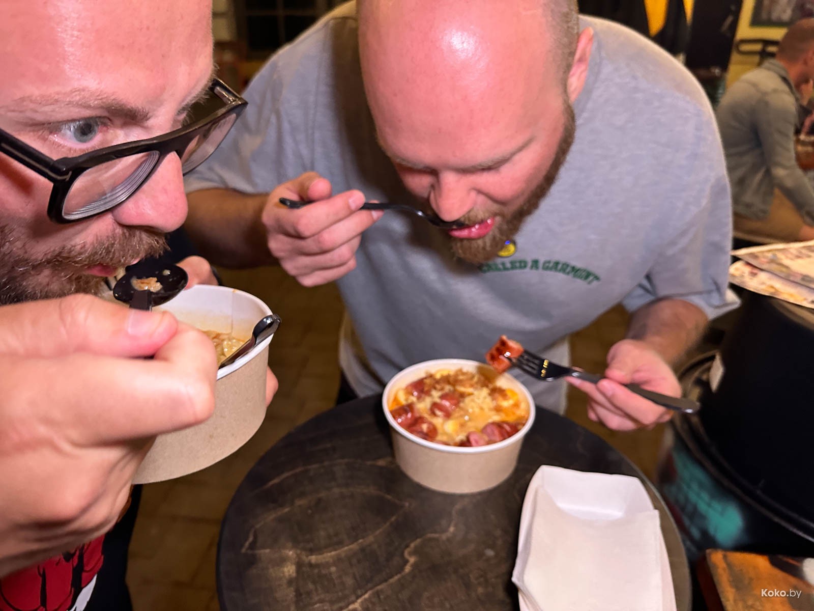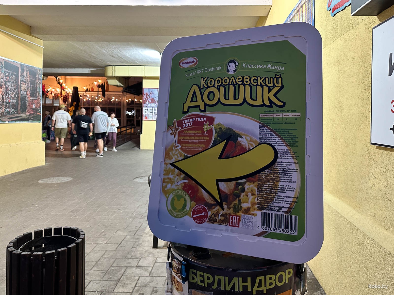 Пожалуй, это одна из лучших, но не новых идей быстрой вкусной уличной еды, которая зайдёт даже бабушкам. В пространстве типа арт «Берлин двор» придумали бодрить ночью и лечить утром после тяжёлых пьянок так называемым королевским дошиком. Вот только работает двор с 20:00, к этому времени зелёный змей сам тебя отпустит. Короче, тестим самый дорогой дошик, а я покажу свой вариант действительно царско-королевского супа из пачки.