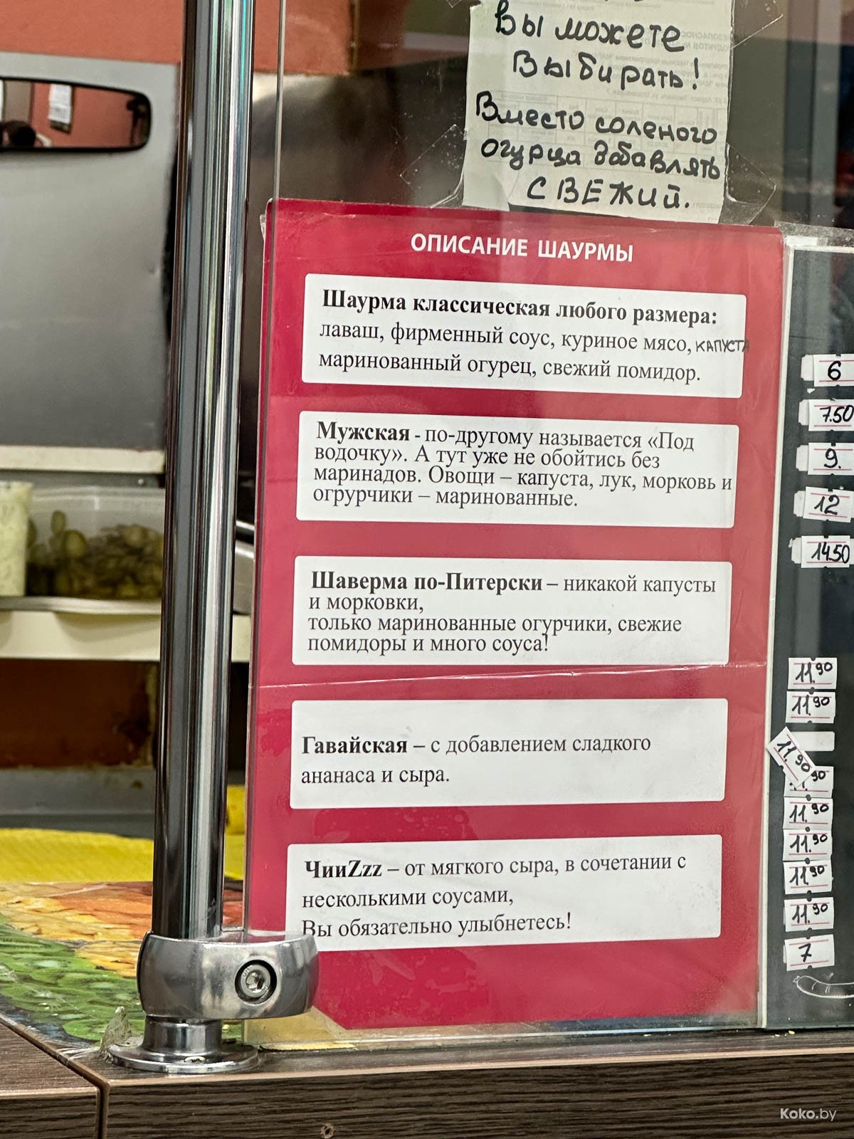 В этот раз волею судьбы мы навестили тихий город в 30 километрах от столицы, ради чулок и носков, о которых позже. А по пути решили записать их старинные сказки, легенды и тосты! На запрос про заведения Заславля Гугл молча пожал плечами, выдав стрёмную подборку, после которой шанс вернуться домой вовремя стремился к нулю. Воспользовавшись советам местных, китайский автомобиль помчал нас в единственный суши-бургер бар и за шавой.