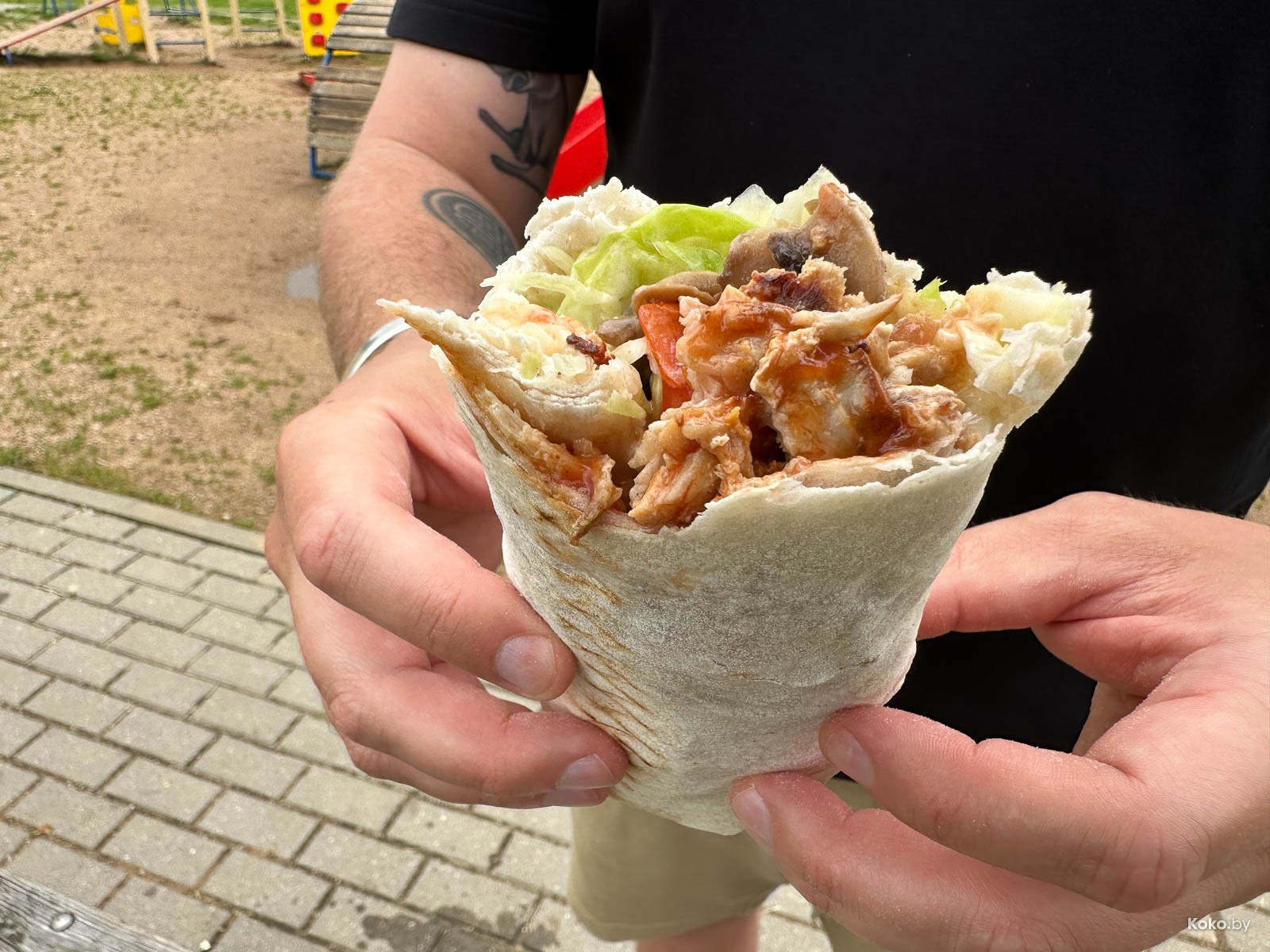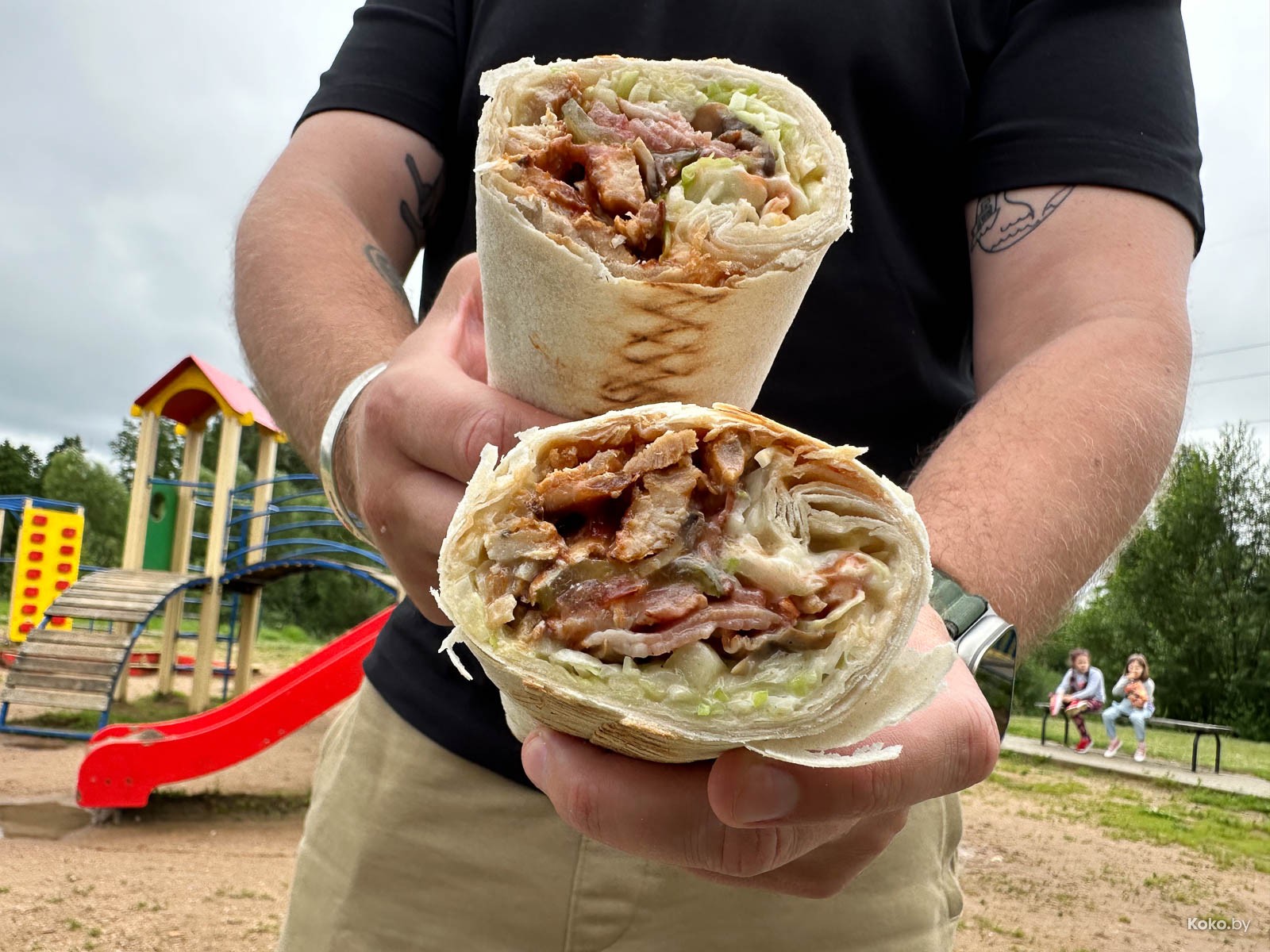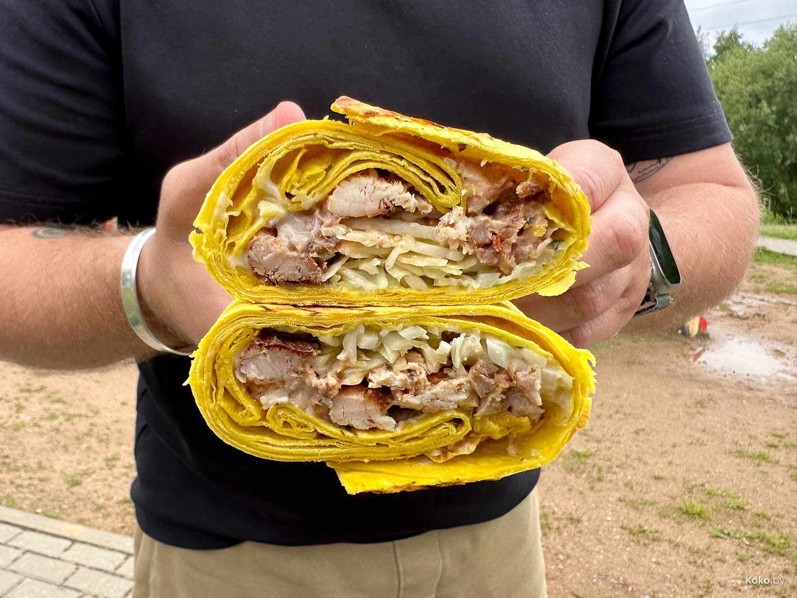 Ну конь! Напихали всего подряд, грамотно скрутили в точно сырный лаваш? Срез красивый. Курица суховата, капуста хрустит, соусы - базовые. За эти деньги без эмоций, абы брюхо набить на 7 кокобаев.
