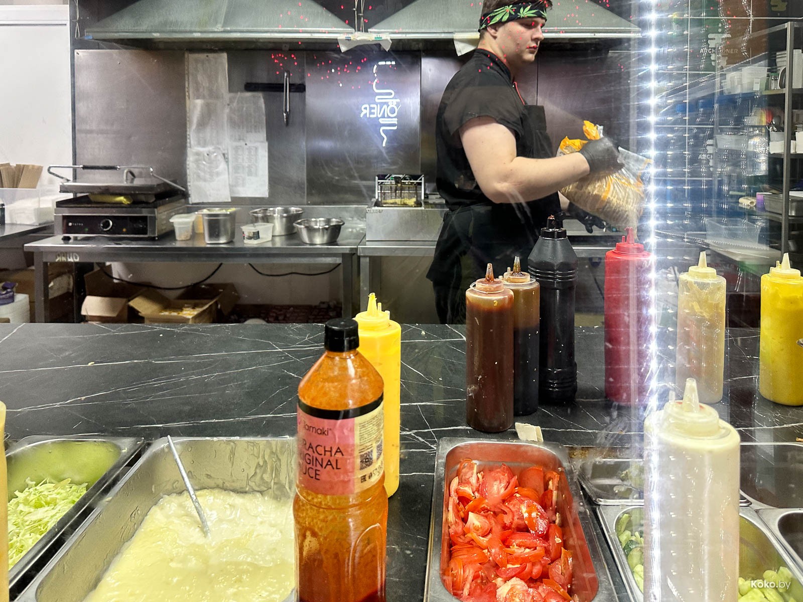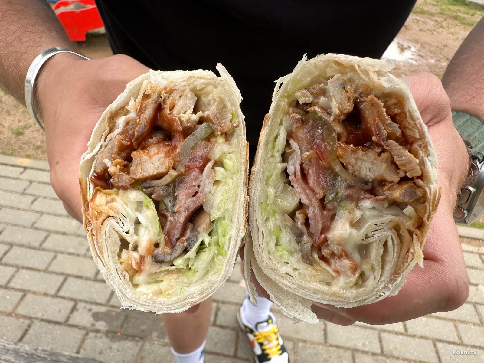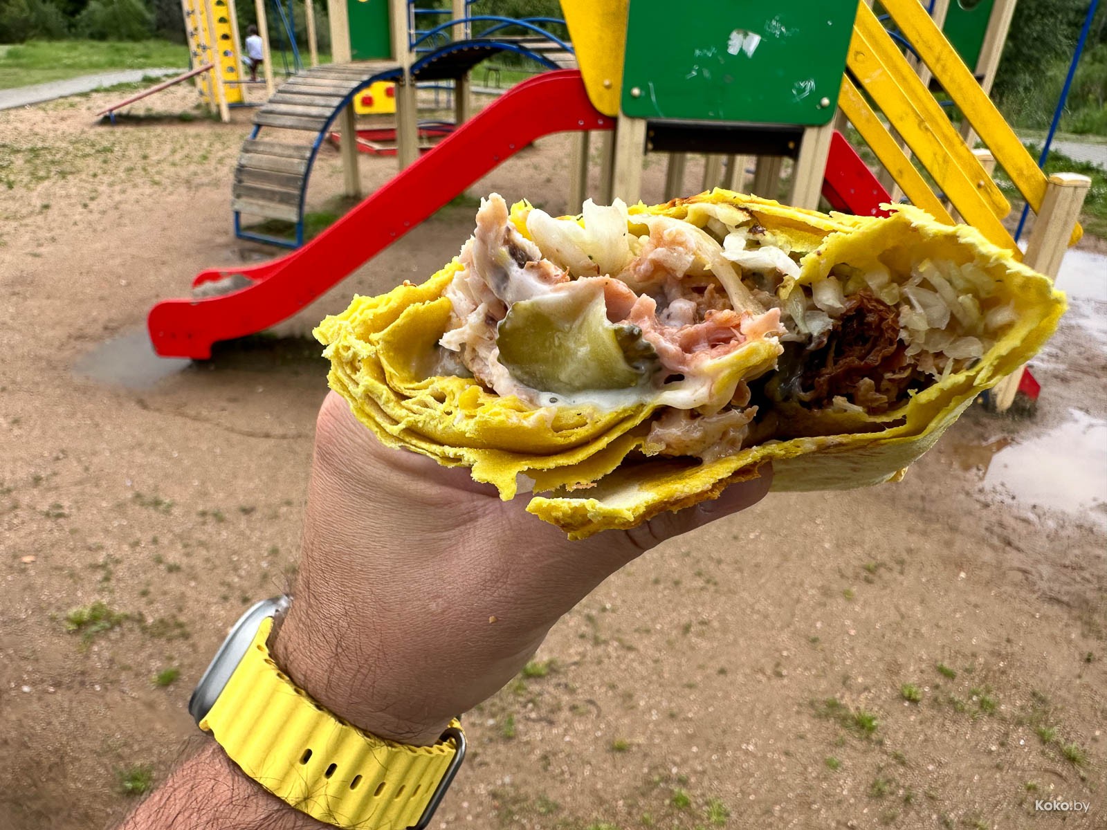 Ну конь! Напихали всего подряд, грамотно скрутили в точно сырный лаваш? Срез красивый. Курица суховата, капуста хрустит, соусы - базовые. За эти деньги без эмоций, абы брюхо набить на 7 кокобаев.