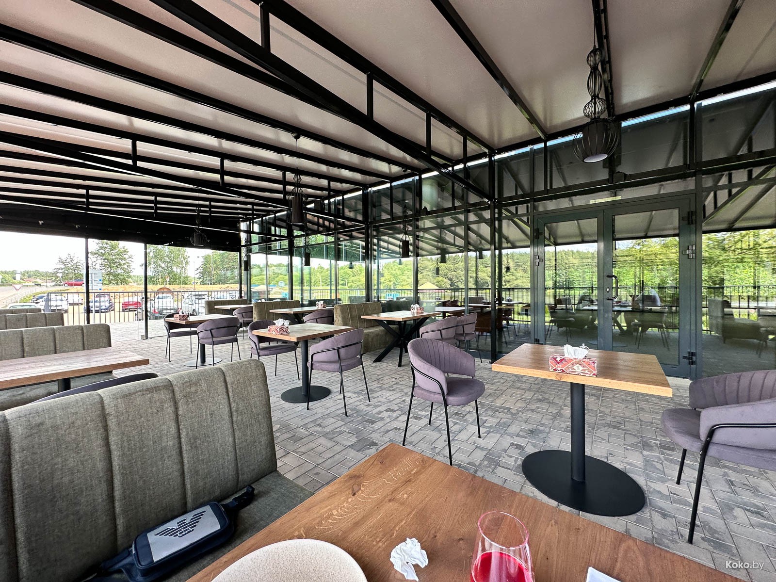 Обосновался ресторан на природе у речки, с парковкой повезло, сегодня свободная. Работают в диком тесте, а точнее, лишь одна из двух террас. Сам же ресторан хоть в боулинг играй, даже мебели нет.