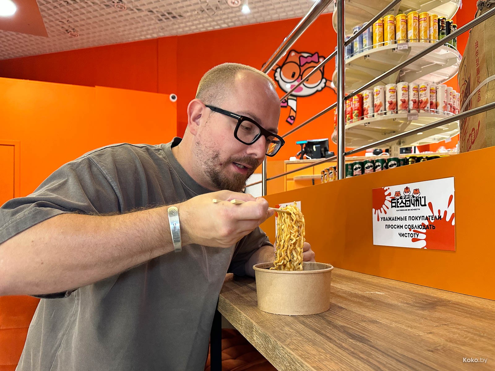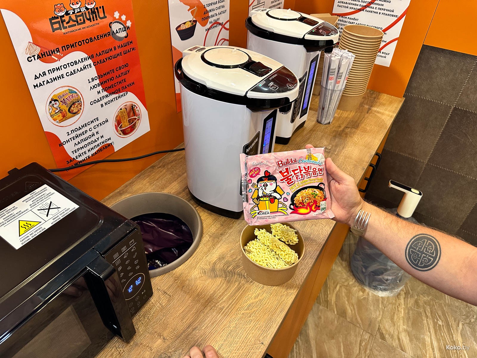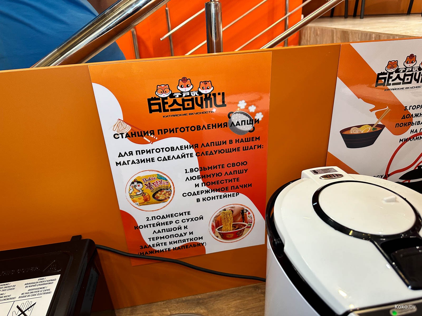 Как говорится, лучше три белочки в магазине, чем реальная белочка в голове. Благодаря дружественным контактам с Китаем, в Беларусь начали привозить реально прикольные вещи из рубрики «Никогда в Минске» уже в Минске. Ассортимент плюс-минус одинаковый, но у белочек в «Арена Сити» своя фишка - это дегустационная площадка, где прям на месте можно заварить любую купленную у них лапшу или рамен, типа суп. Странно, что китайцы первыми не додумались.