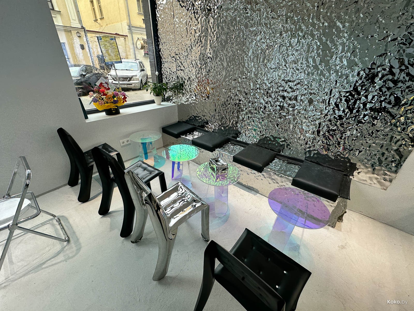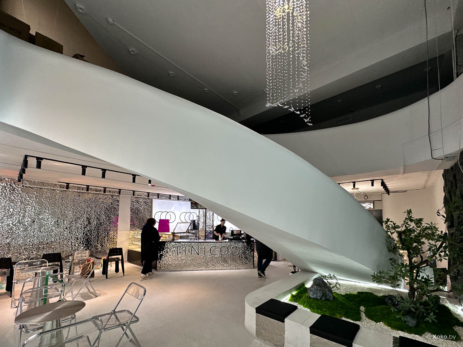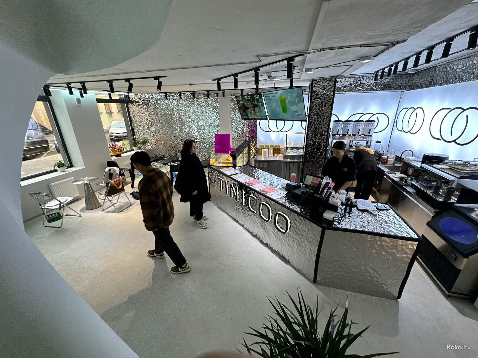 Новая баблтишная «Тинико» внутри, как курица духовку видит, да-да, в блестящей фольге, а точнее, в декаративных панелях из металла. Мусорки с глазами, глаза на входе, большие окна и удобная мебель.