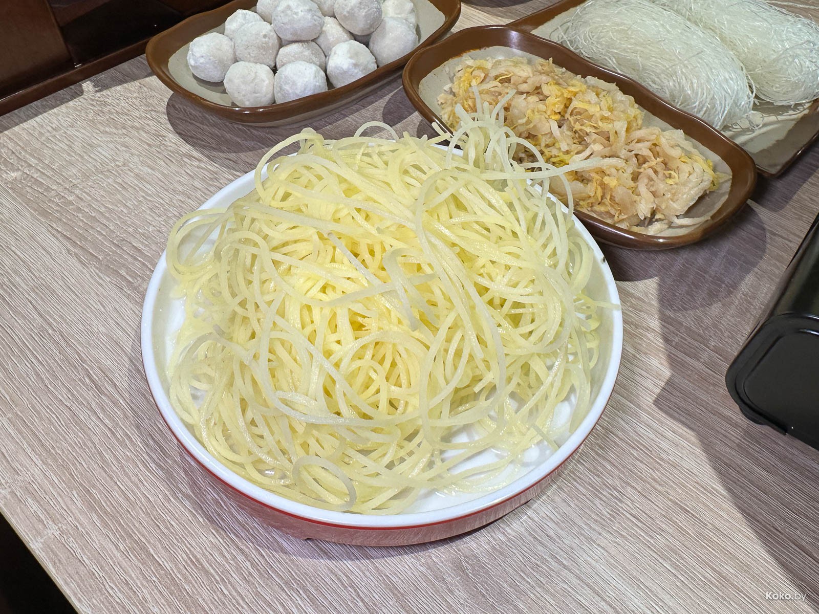 Частично переведено, как пальцем в небо. На двоих выбрали набор бараний Шабу-сябу с мясом и хз чем ещё - 68р за всё не зная что. Дополнительно за деньги картофельную лапшу, овощную лапшу, грибы шиитаке и рыбные шарики с начинкой. Спойлер - за всё отдали 123р.