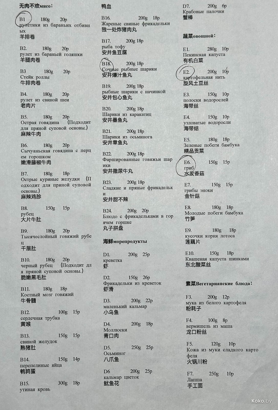 Говядина, баранина, рыбные шарики - вкусно. С остальным рискуйте сами, помню, базовая пекинка в бульоне вкуснее всего варится.
