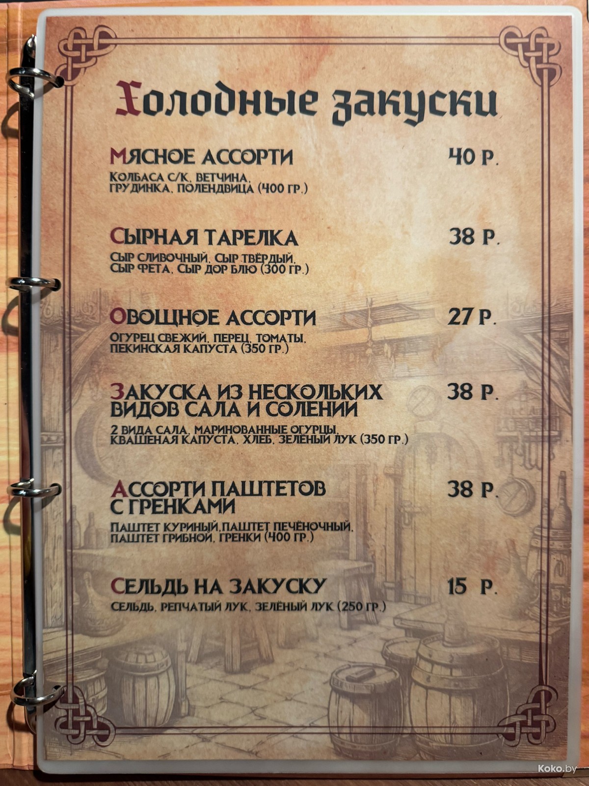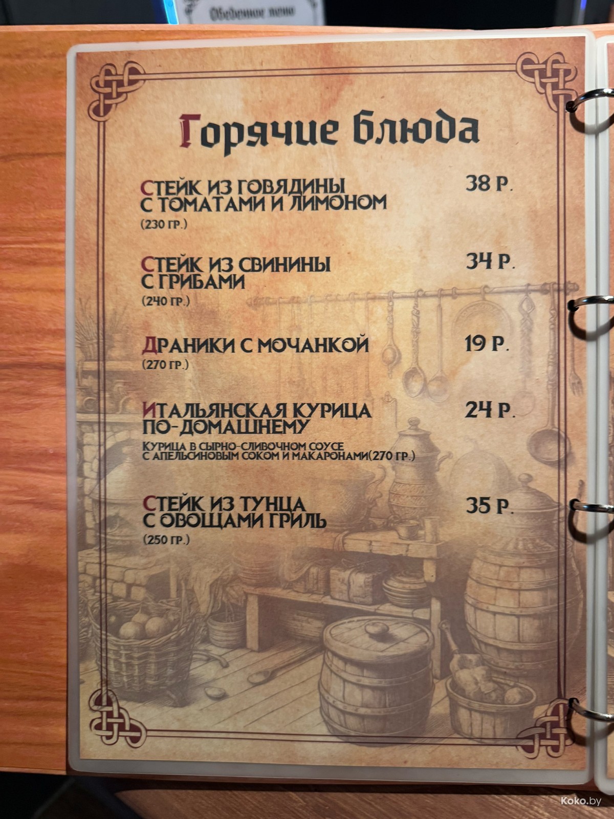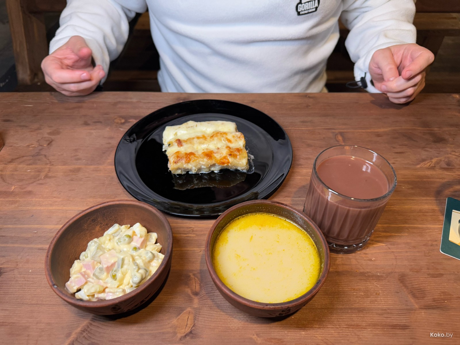 Закуски, салаты, продукты из фритюра, чутка белорусских блюд, картошка фри на 2р дороже обеденного комплекса. Как?!
