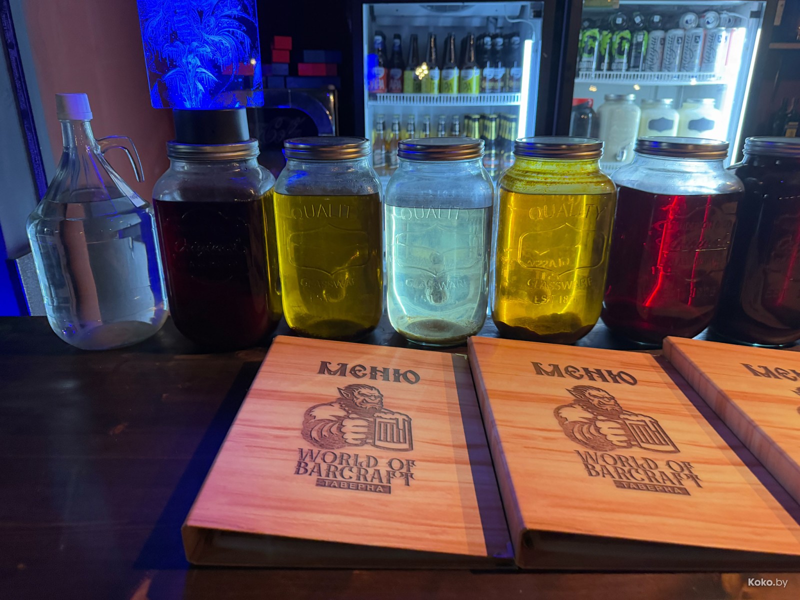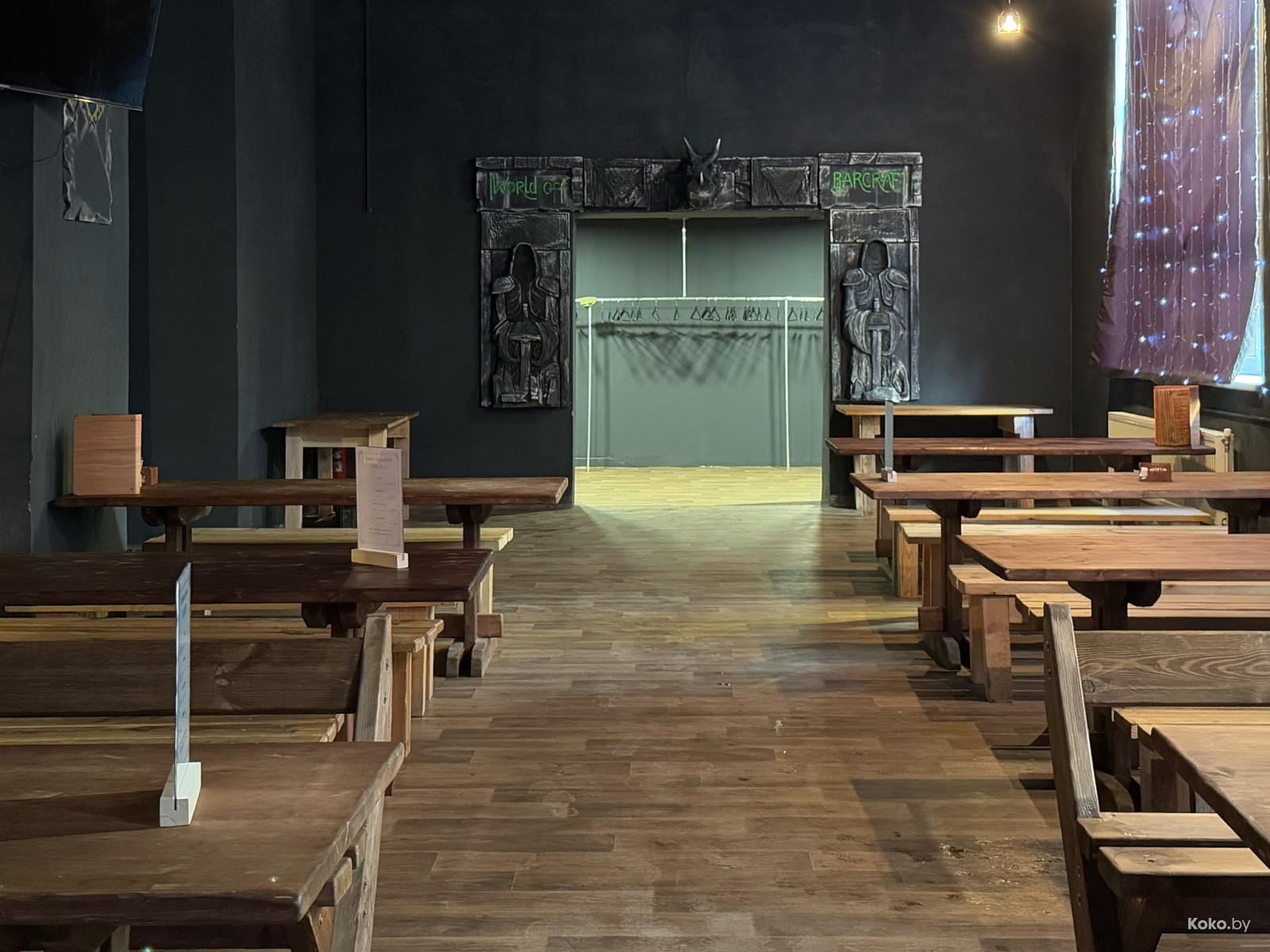 Как понятно из названия, это вам не ресторан, магии от еды ждать не стоит. Потому что новая таверна «Ворлд оф баркрафт» про пиво, закуски, настольные игры, гаражную музыку и залипания для фанатов WOW. Открылась она на «Лучшей улице» рядом с фудкортом, на глаз квадратов триста, внутри много ступенек, деревянные лавки, массивные столы, большие окна завешены тряпками. Сюда нас заманил обед из трёх курсов с какава за 10р, звучит песня каскадёры.