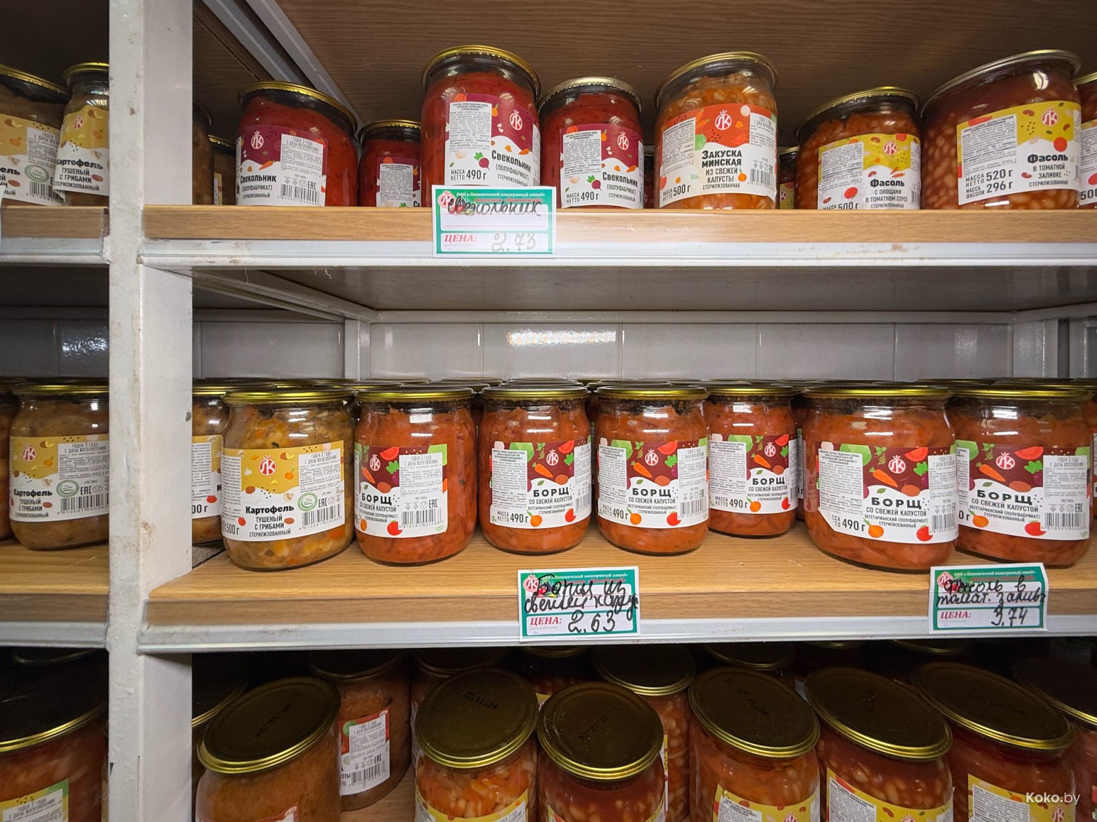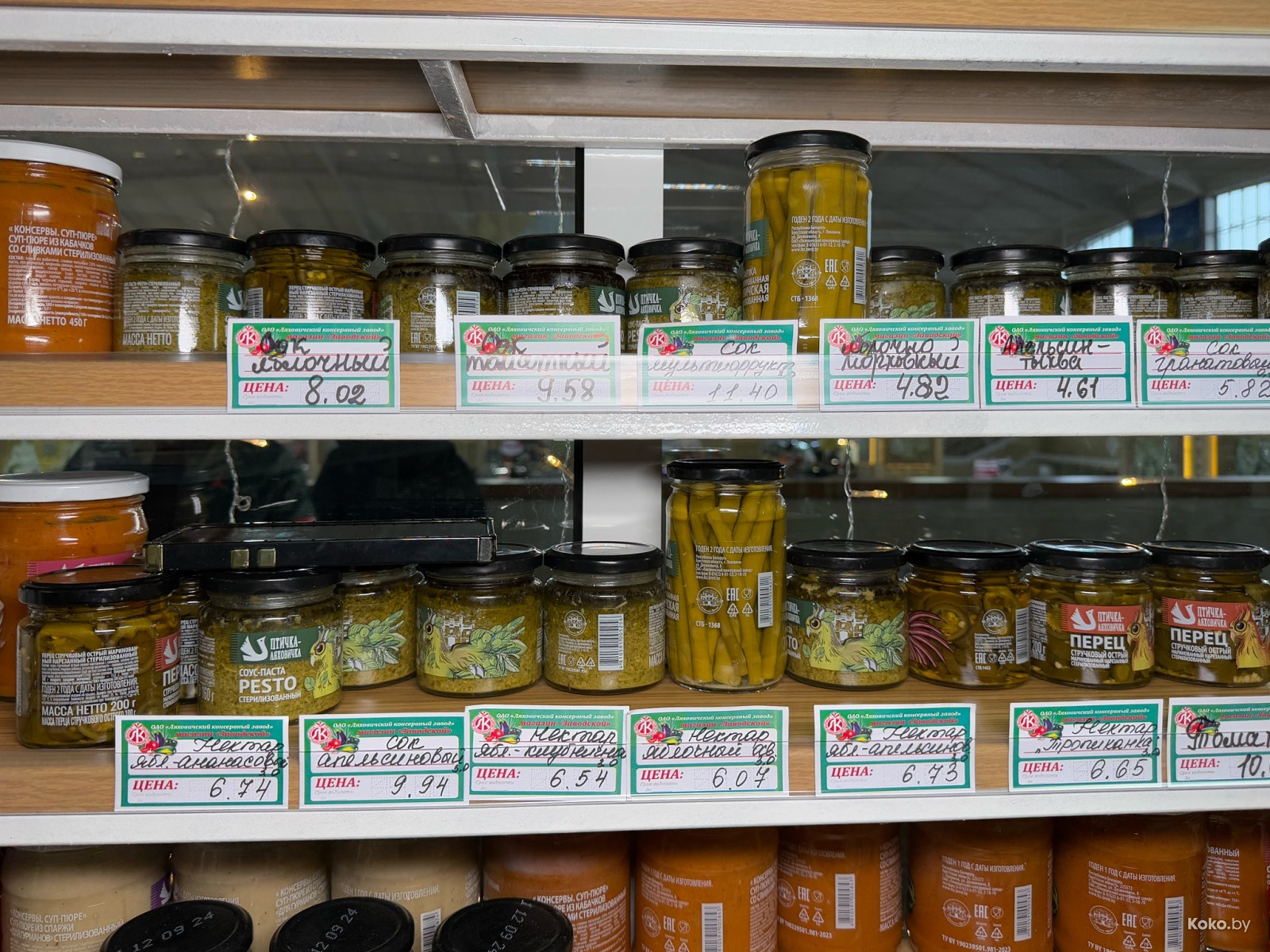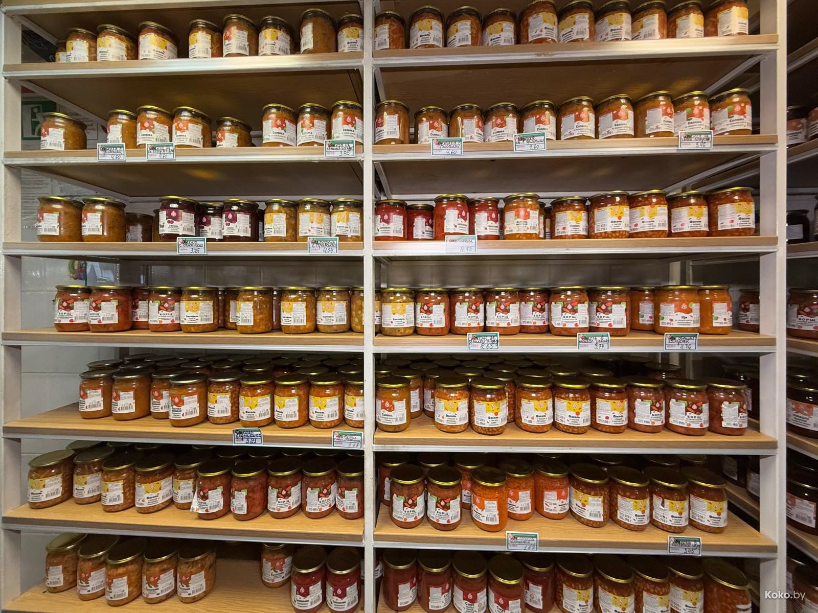 Знаменитые на всю Брестскую область консервы и закатки, теперь не выезжая из столицы, на просторах «Комаровского рынка». Маленький погребок от «Ляховичского консервного завода» поставили на втором ярусе крытой части рынка, ищите глазами странную вывеску магазин «Заводской». В меню магазина, как у бабули в деревне: соки, компоты, супы в банках, варенье, джемы соусы, спаржа и прочее без мяса по смешнейшим ценам. Видели тот самый белорусский соус песто?