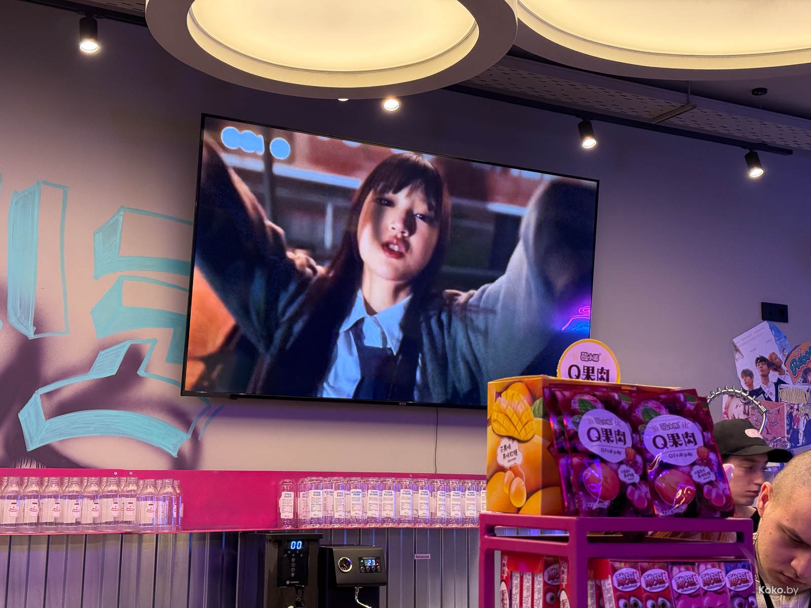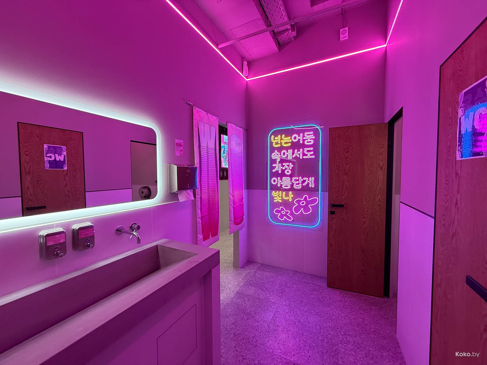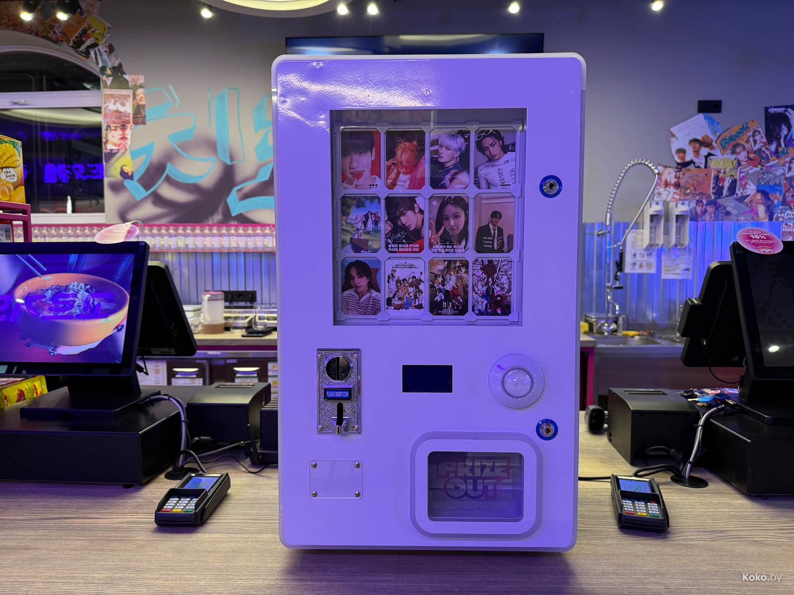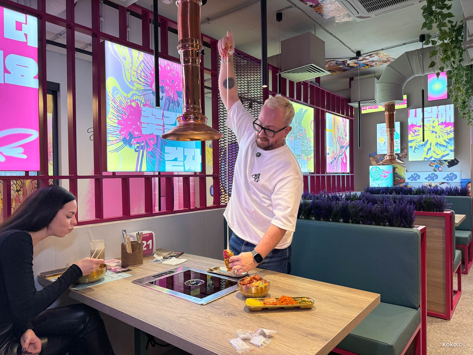 Как в корейских аниме - 100% неон, ярко, пёстро, фото-будка, автоматы с игрушками, магазин азиатских сладостей, корейский мини-бар и в столах корейский барбекю для жарки кого закажешь. Атмосфера на 10 из 10 для юных инстаграмщиков, аж в глазах рябит от удовольствия.
