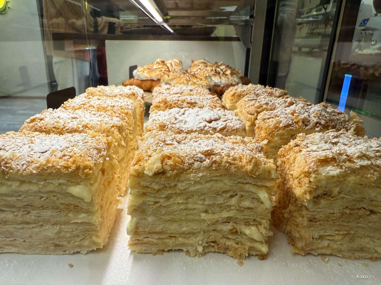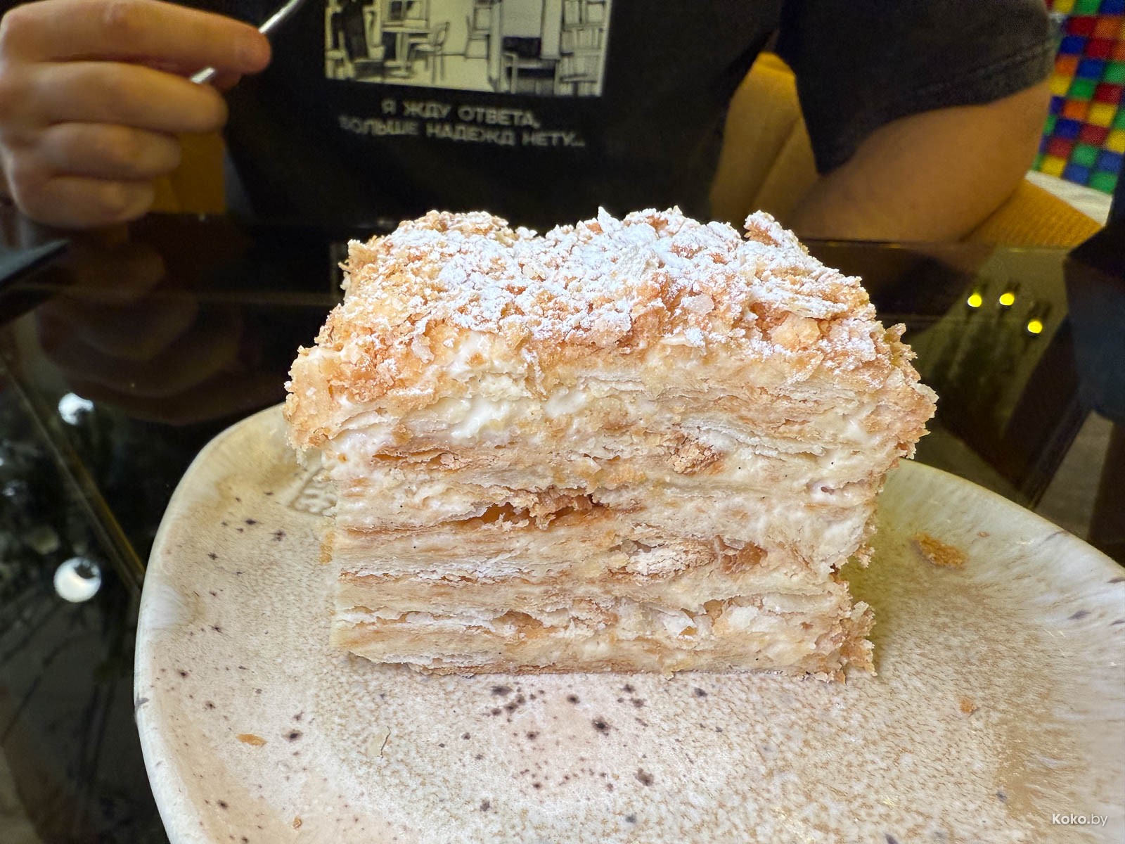 3. Кусочек Наполеона - 6р. Мягкий по коржам, но не мокрый, сливочно-сладкий, но без передоза. Рекомендую к чаю за 12р, надеюсь, чайник.
