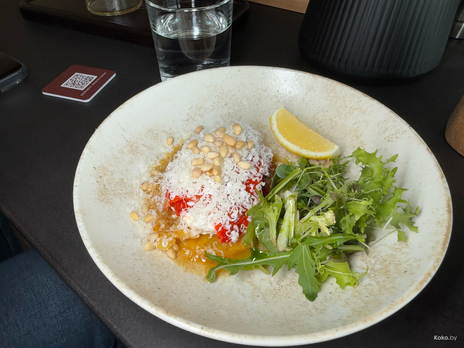 4. Мягкий козий сыр с анчоусами под филе печёного перца за 27р и опять под пармезаном. Они там что - фуру с сырами тормознули? Годно!