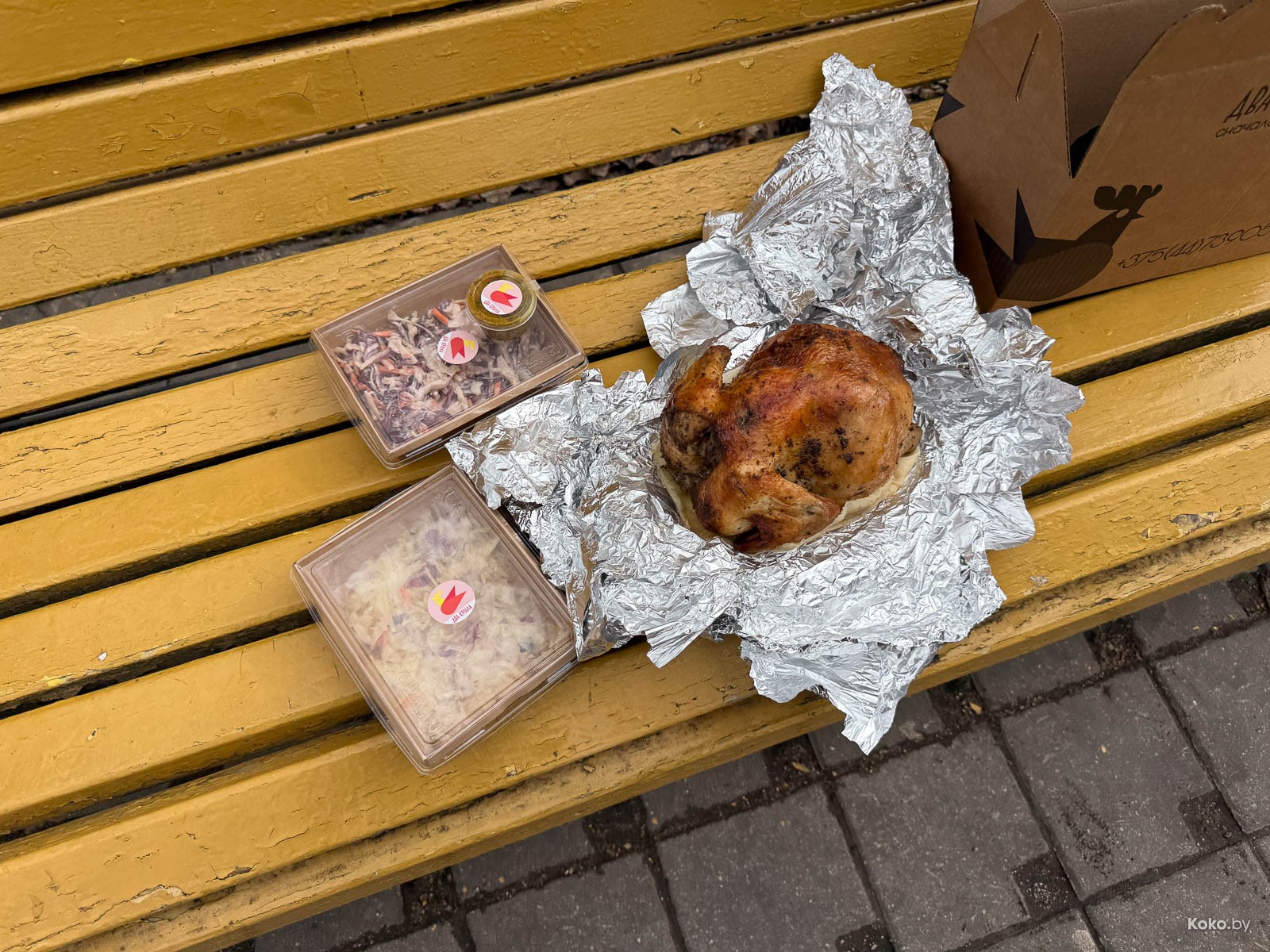 Самый ленивый вариант добыть куру гриль с вертела - это сходить в кулинарию любого крупного гипера, вкусовые качества 50 на 50. Второй вариант чуть сложнее: погуглить магазины «Дзержинка», золотистых кур на вертеле точно крутят по адресу Змитрока Бядули, 8 по 13р за килограмм. И новый, третий вариант для миллениалов - заказать в окне выдачи курятинки «Два крыла». С этого момента рекомендую звонить для предзаказа куриного бокса.
