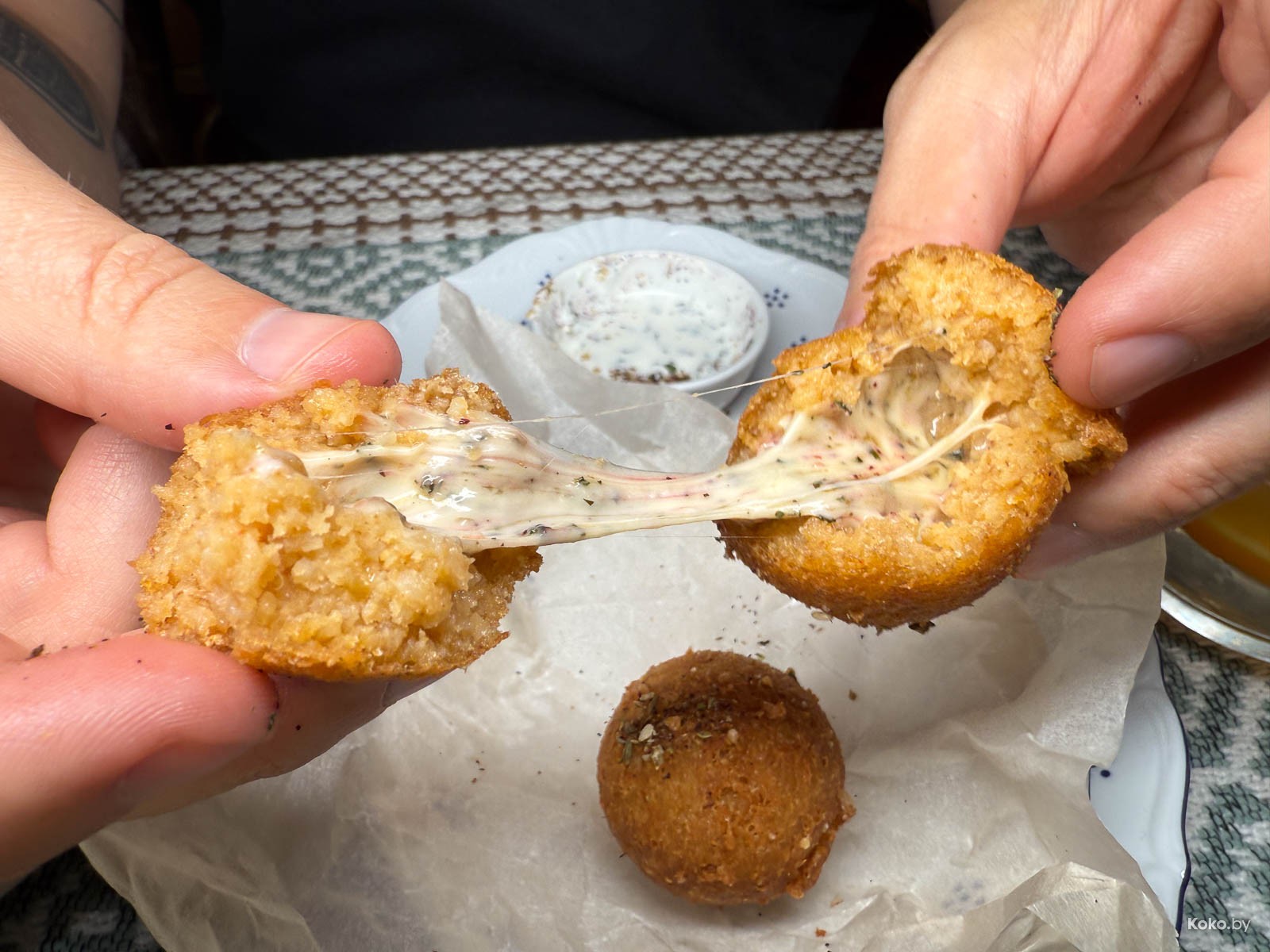 3. Итальянские вег аранчи с, надеюсь, это тянется так сыр. Хрустящие, пряные, макаем в йогуртовый соус с мятой. Лучшее вложение 17р в еду.