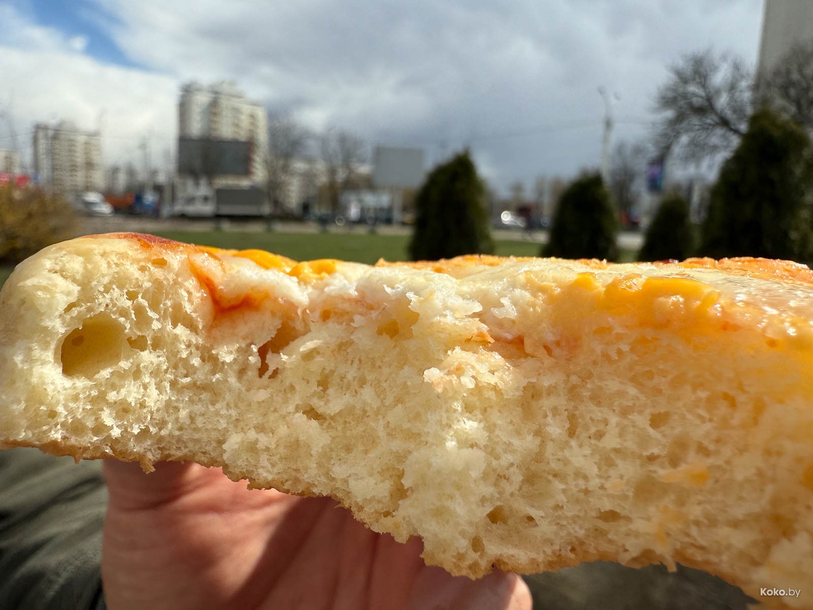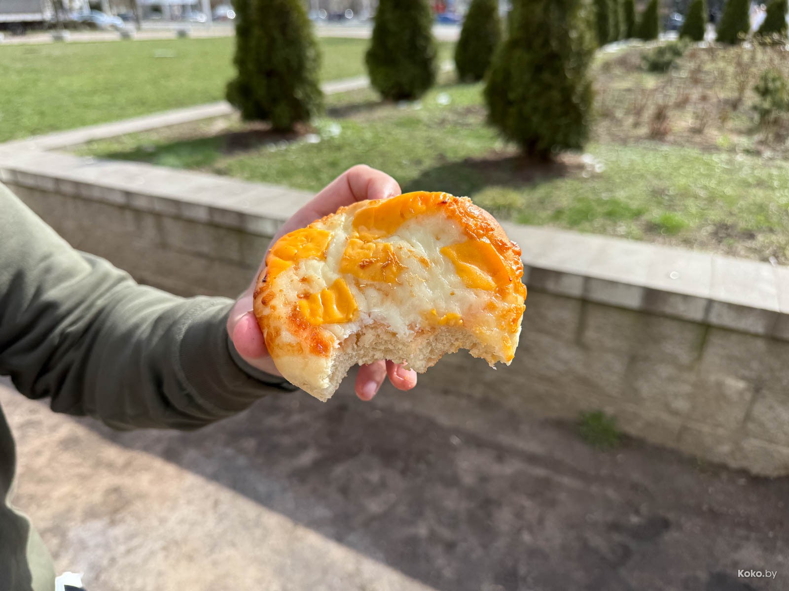 1. Из четырёх вариантов первое место уходит смаженке с проверенной школьными перерывами начинкой: колбаска соломкой, сыр, помидор, маринованный огурчик и кетчуп - это топ! Последнее место - сырная.