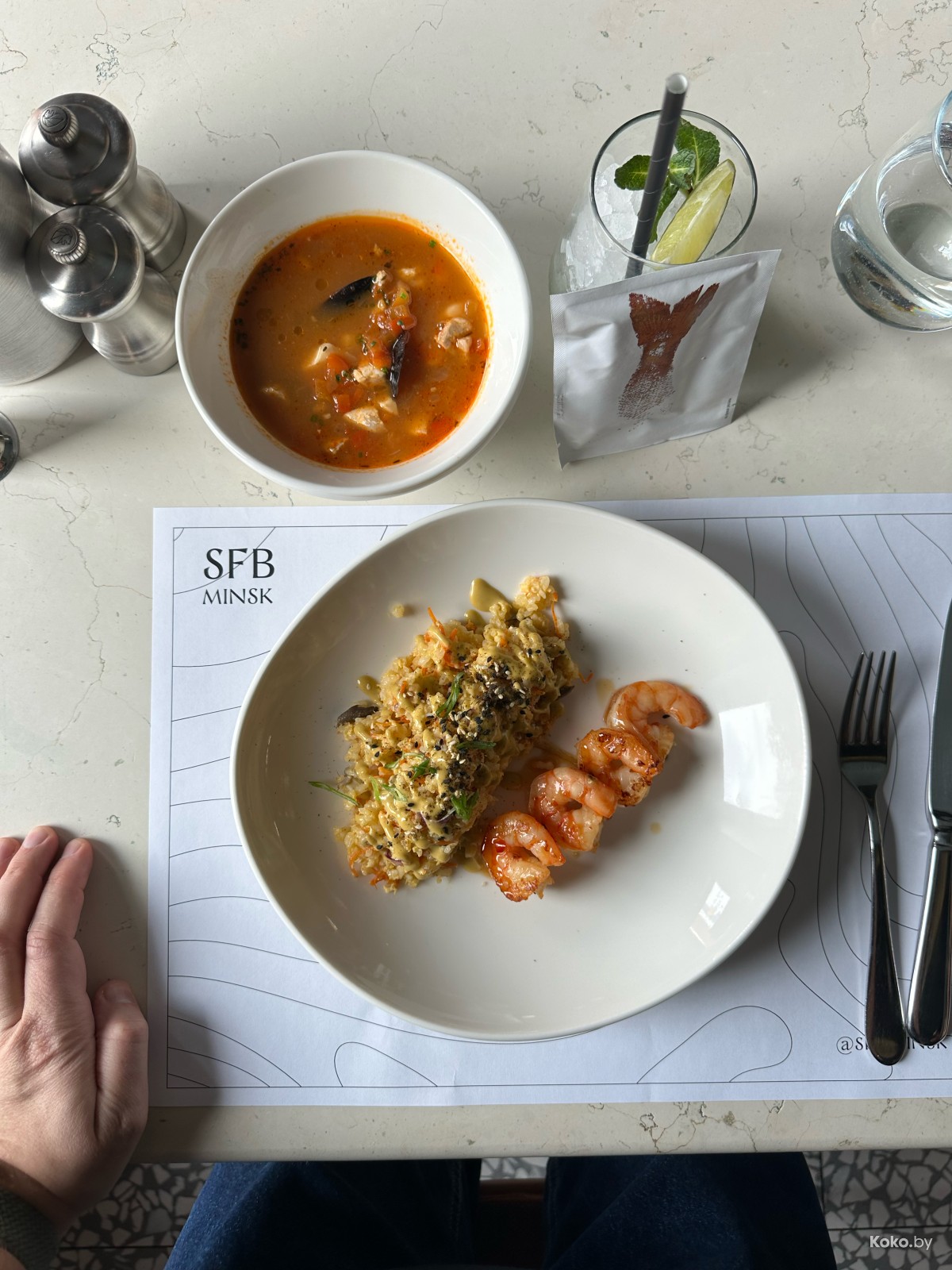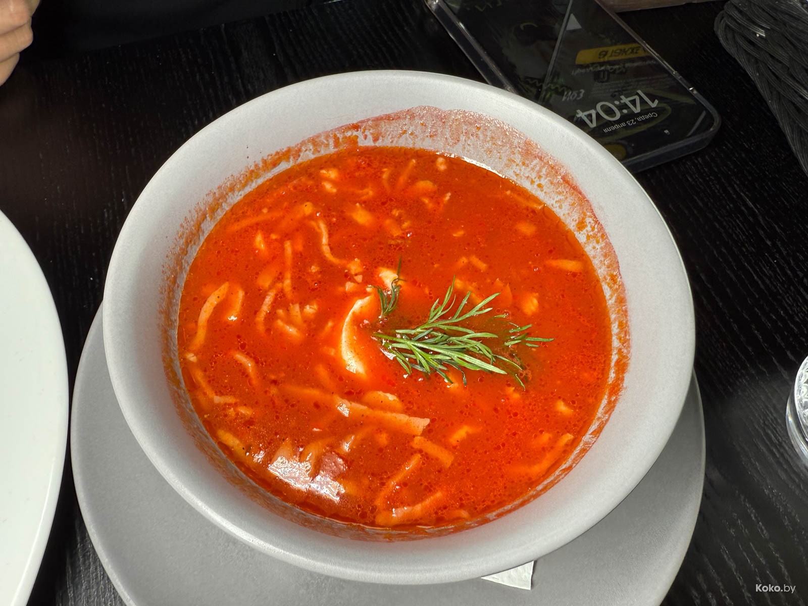 1. Обед из 3-х блюд с хлебом собрали минут через восемь. Солянка Блади Мэри с разными колбасами в лучших антипохмельных традициях: крепкая, кислость без жести, порция честная и ложка сметаны. Кайф!