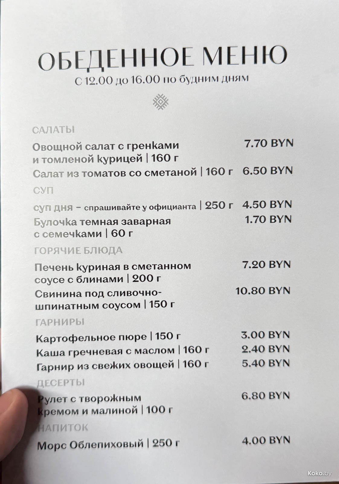 Задача сложная, но вполне себе решаемая, если обходить модные рестораны, где лишь горячее завесит рублей на 18. Волею наводки читателя из офисов над станцией метро «Площадь Ленина», мы прибыли на затест обеда за 12р в том самом «Лидбире», у которого на основное меню с ценами явно заигрались. Кроме него как дома кормят за 12р в кафе «Любимый Брест» и прям в лучших бабушкиных традициях в ресторане «Литвины», но там в обед за места дерутся.