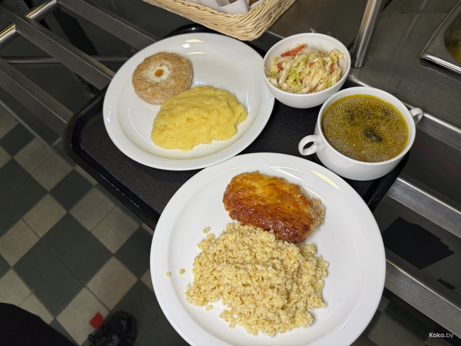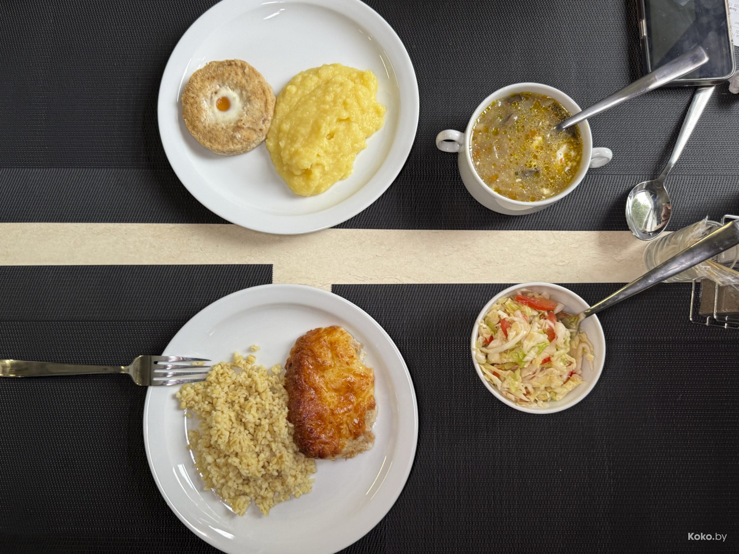 За один поднос еды вышло 22р, уложились по 11р. Но без компота, без хлеба, без двух супов, без четырёх котлет вместо гарниров.