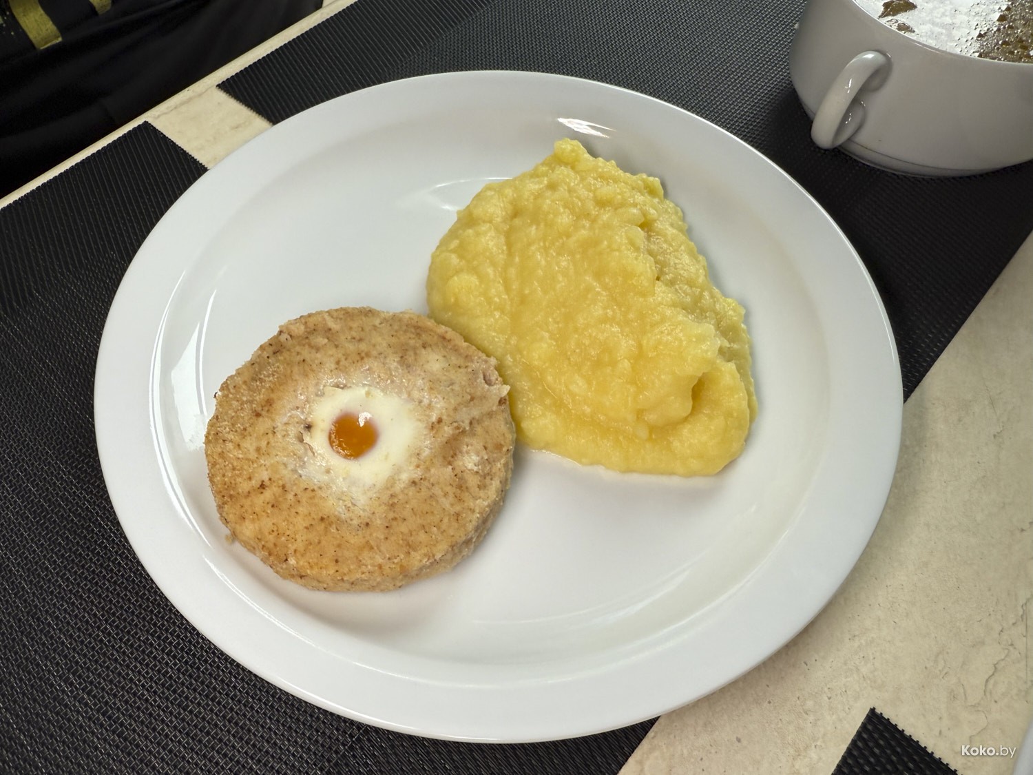 1. Филе-о-фиш с яичным глазом за 5р зашёл на ура, картофельное пюре - 3р по цене 1кг в магазине - водянистое, не по канонам. Под салат наелся.