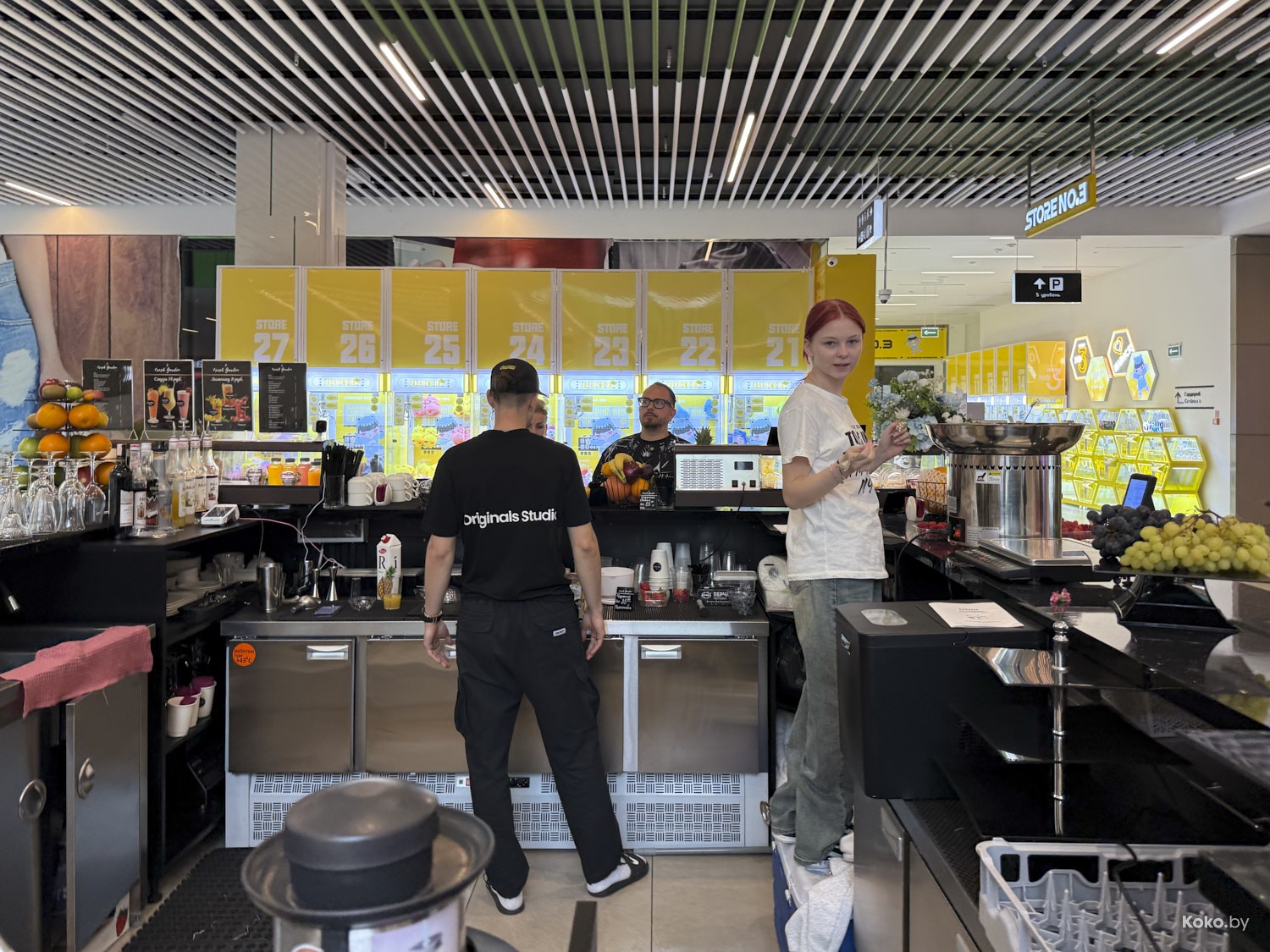 МИНУСЫ: неорганизованно, нет красивых пластиковых стаканов, чтобы взять с собой, нет фишки в рецептах, один шоколад, и тот не готов.