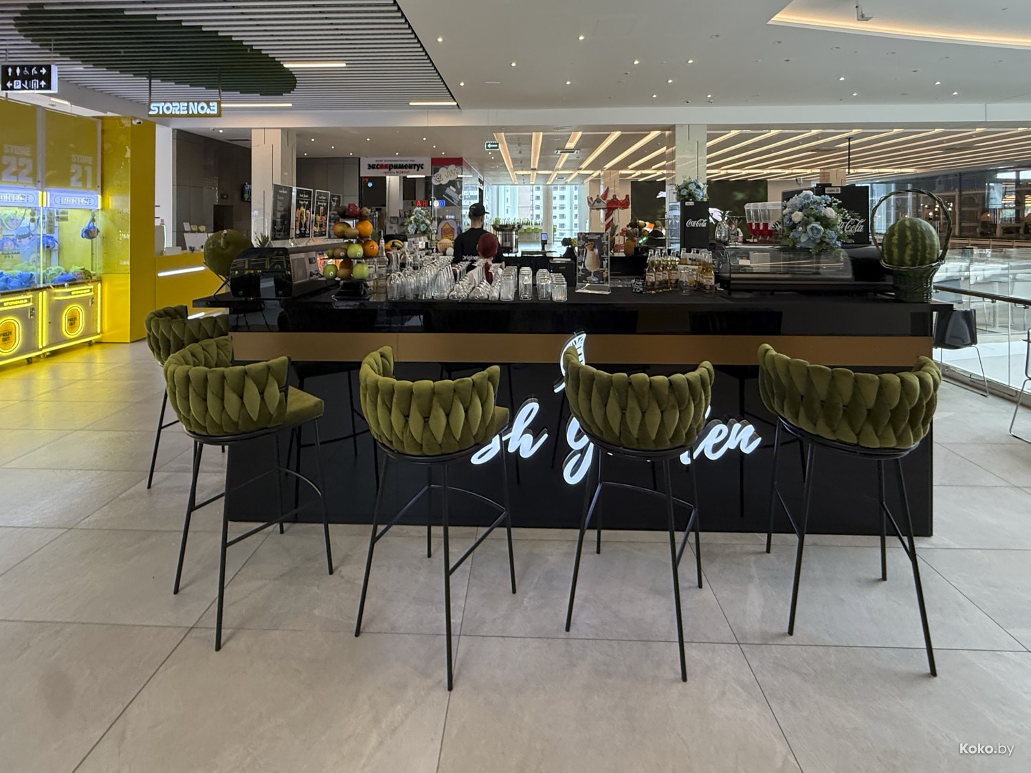 Соко-бар «Фреш гарден» захантили на третьем этаже в «Палаццо», где они отхапали здоровенный кусок площади, плюс стол со стульями. Как говорили деды, большому островку - большая аренда, рискованно!