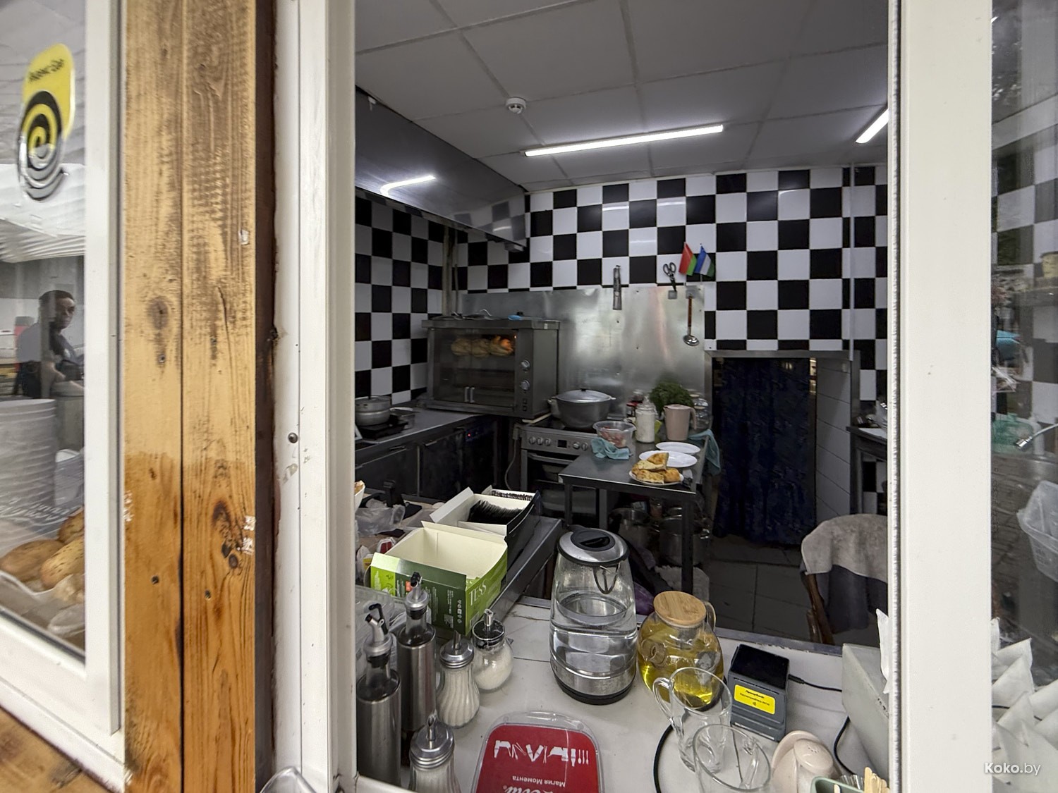 Как и у «Сайгона» по соседству, кухня внутри, столы снаружи под зонтом. На кухне узбекского домика пыхтит казан с пловом и румянятся куры гриль, окинув вороньим глазом кухню, принял решение рискнуть.