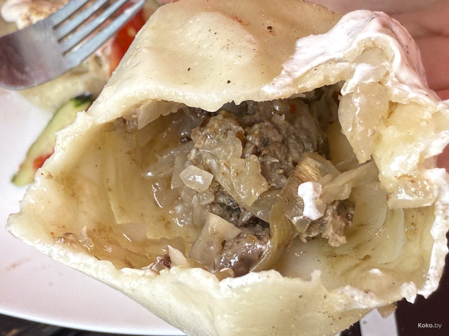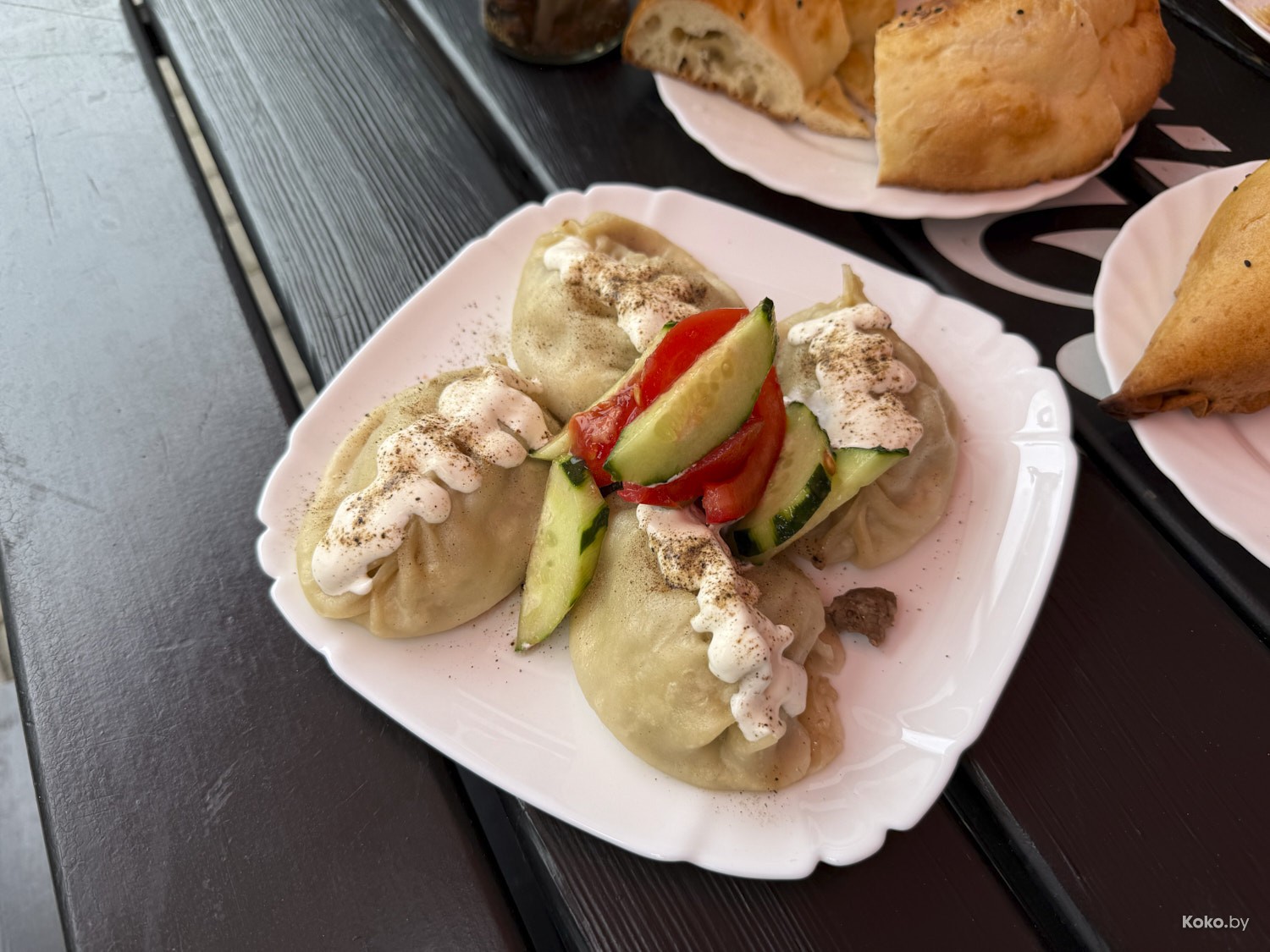 2. Манты чуть тёплые, внутри порубленная говядина с луком, жирком и специями. Употреблять строго со сметаной, топ, но не победитель.
