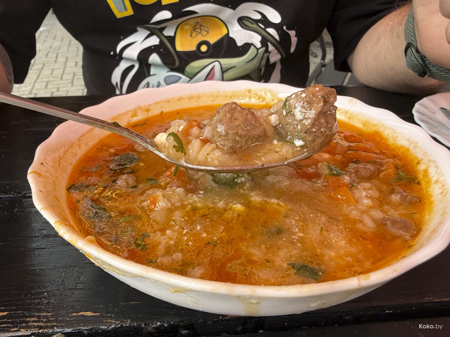 3. Жидкий плов - он же суп мастава с рисом, говядиной в бульоне, как у нашего борща. Честная порция, жирно, сытно, вкусно, как дома.