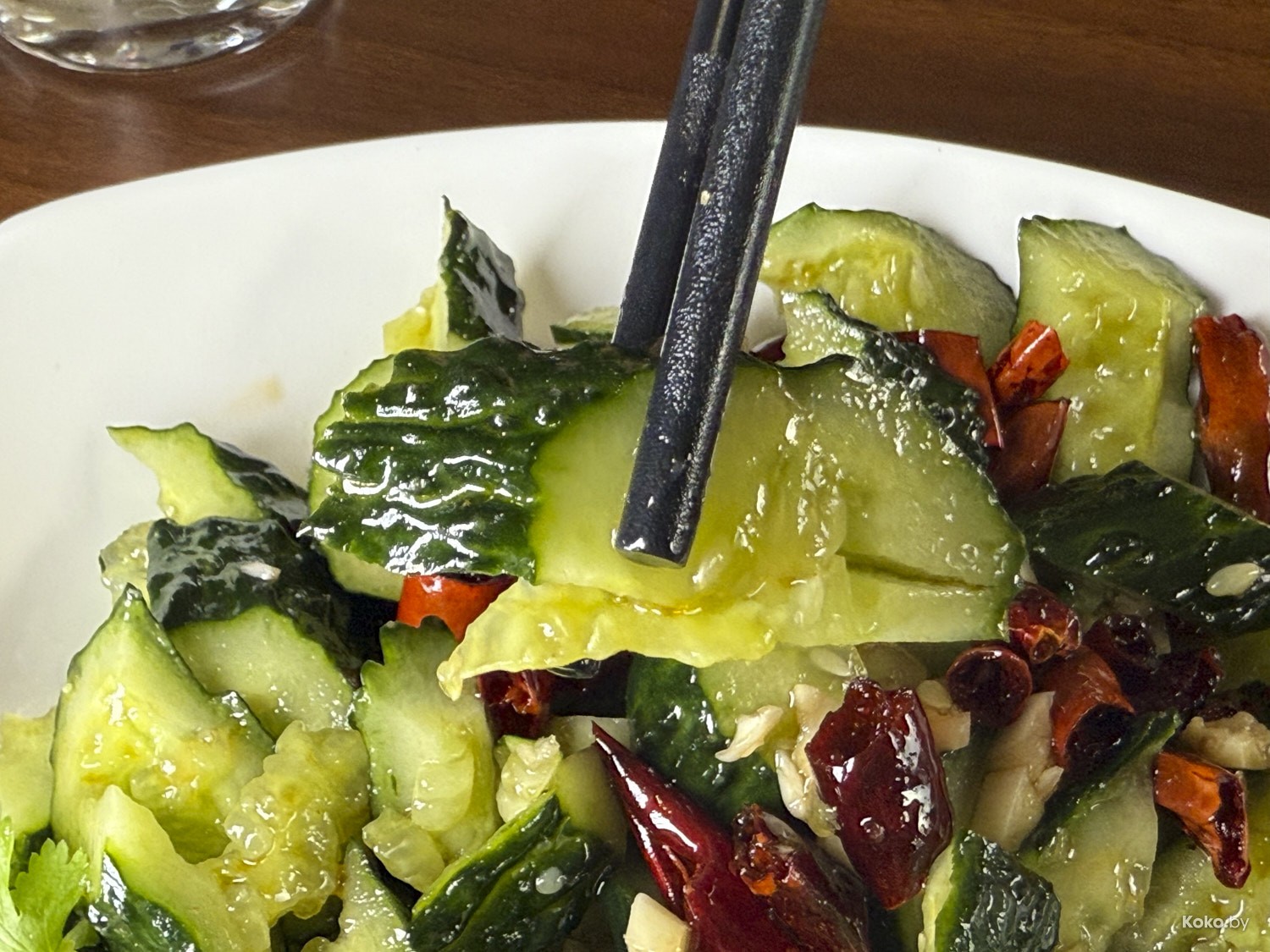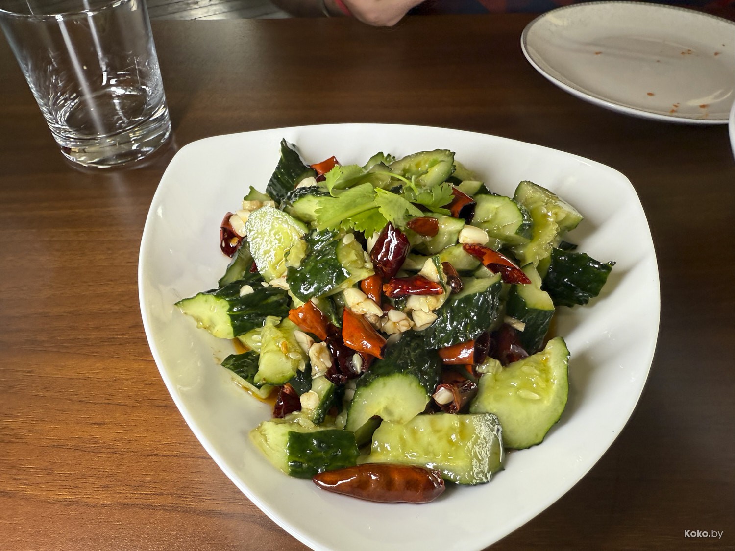 2. Битые огурцы с чесноком и чипсами чили в соево-кунжутном соусе помогают освежить рецепторы, смыв жирность еды с языка.