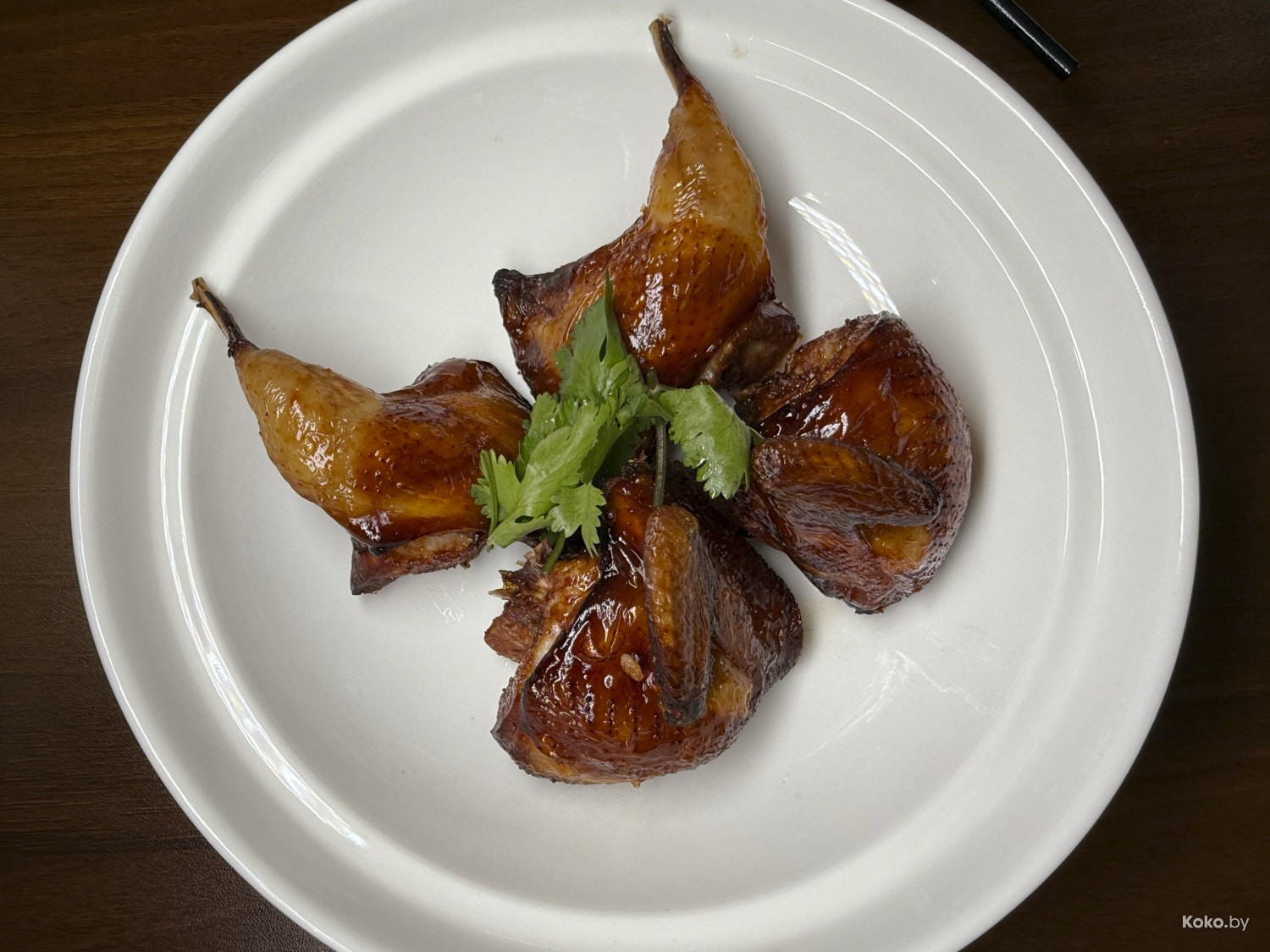 3. Из секретного меню - четвертованная (надеюсь, не воробей) перепёлка в хрустящей корочке под сладкой глазурью на 9 кокобаев.